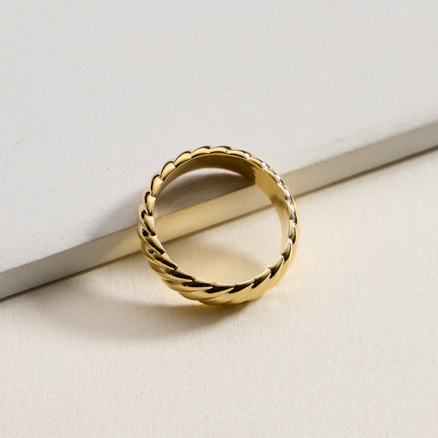 Gold Filled Twisted Rope Band Ring – Vintage Textured Statement Ring – Made in Korea