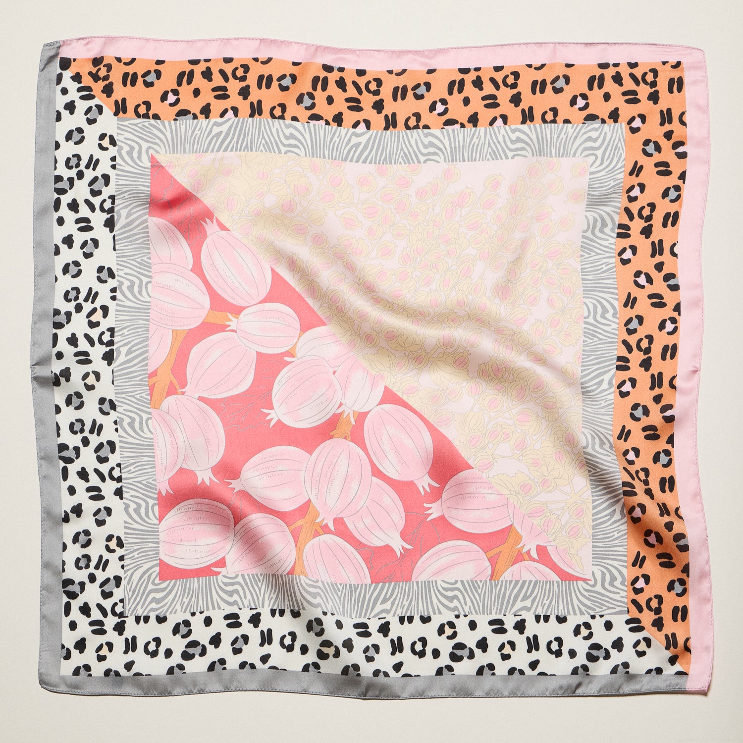 Patchwork Leopard & Floral Square Scarf – Satin Feel Fashion Neck, Hair & Bag Scarf