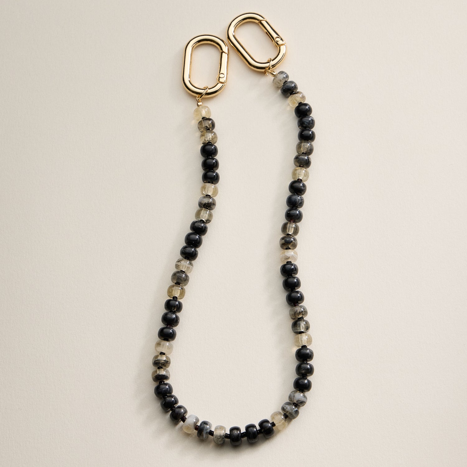 Beaded loop design with durable gold carabiner clasp