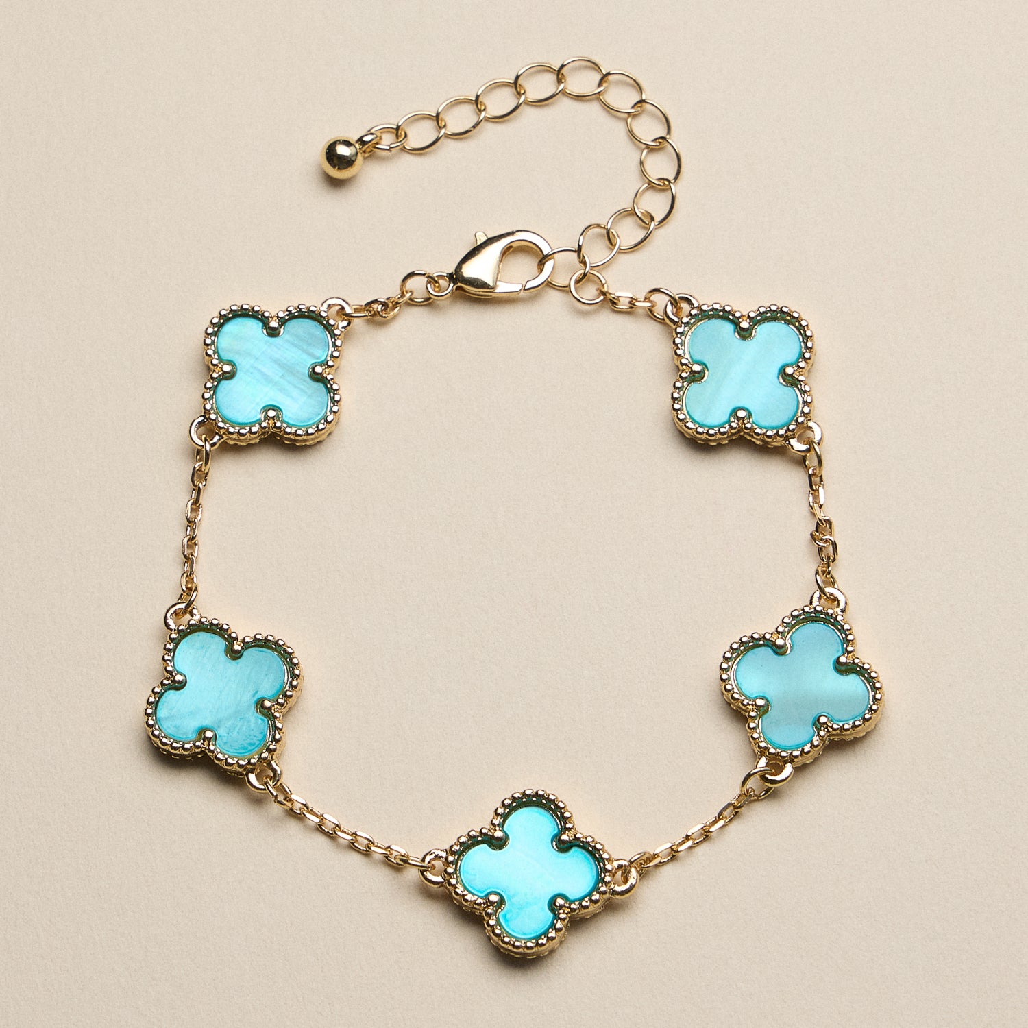 Brighten up your jewelry collection with this vibrant shell charm bracelet, featuring high-shine shell inlays framed in elegant gold beaded detailing. Each charm boasts a soft, symmetrical silhouette that brings a playful yet polished touch to your everyday look.