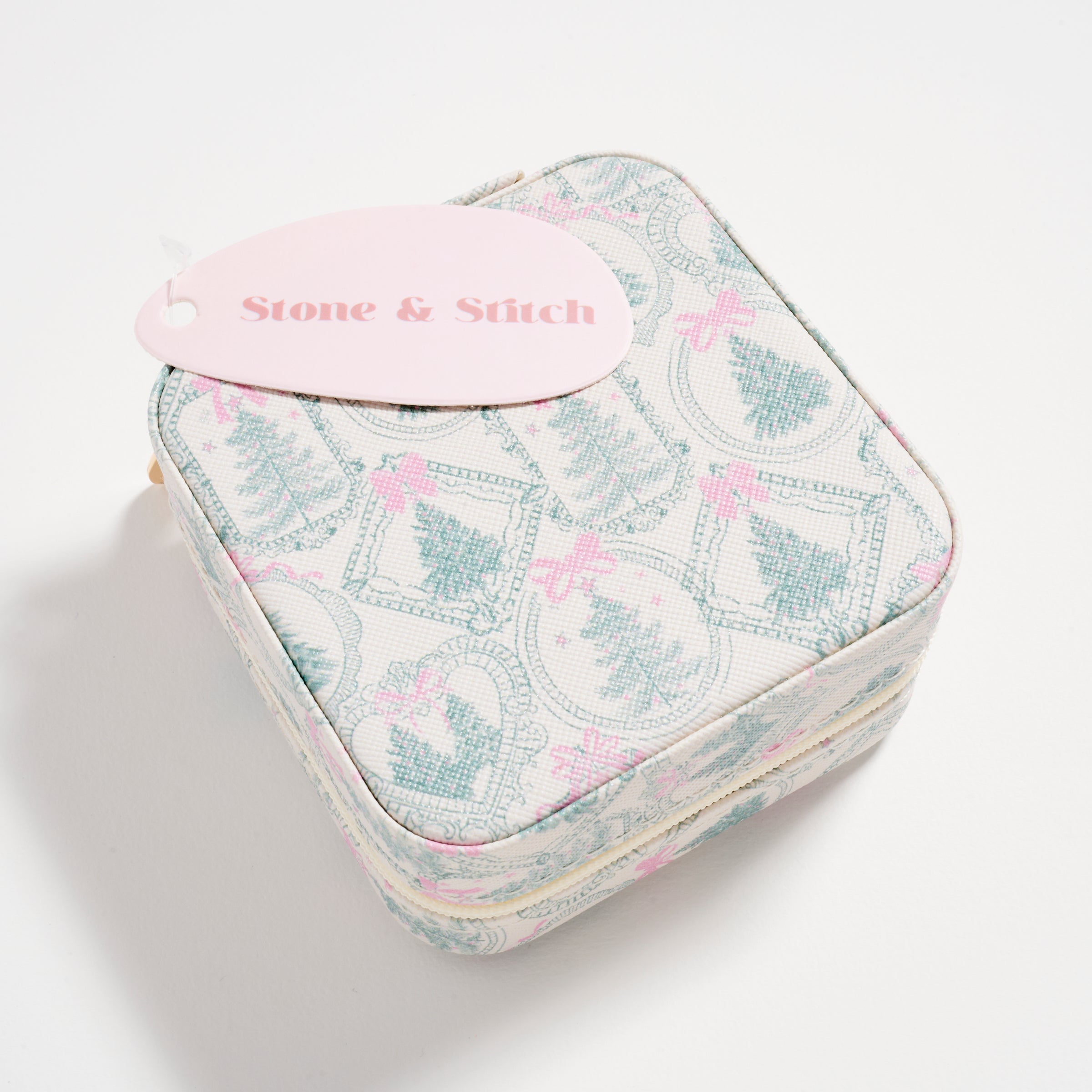 Keep your accessories neatly stored in this stylish patterned jewelry box featuring soft pastel details and a gold zipper accent. Designed with a built-in mirror, ring slots, and divided compartments, it’s perfect for organizing earrings, necklaces, and other small treasures. Ideal for travel or gifting.