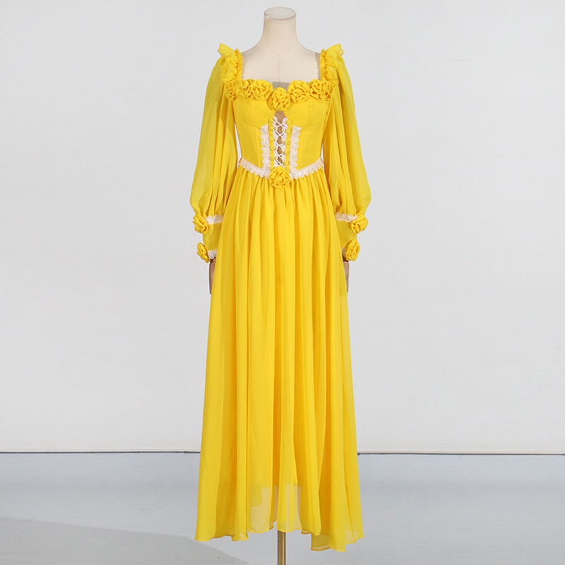 French Elegant Beautiful Dress Autumn Stitching Floral Design High Sense Dress Women