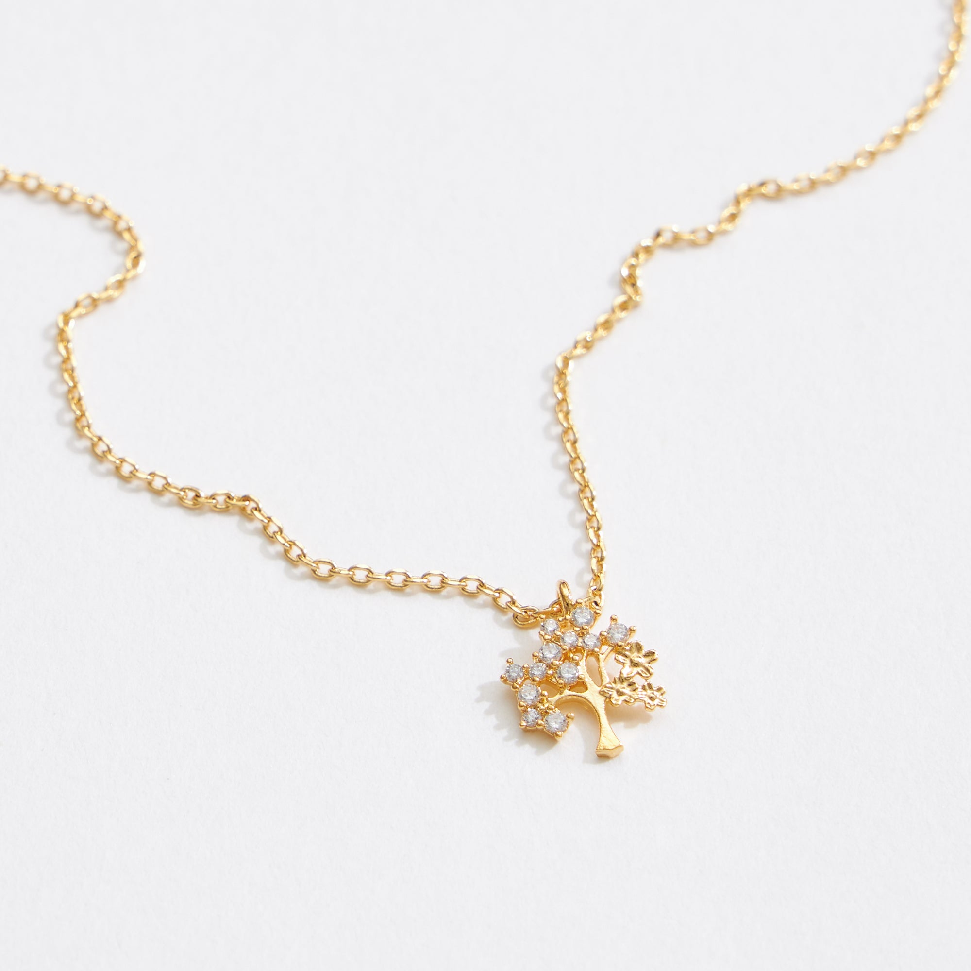 Gold Dipped CZ Dainty Tree Pendant Necklace