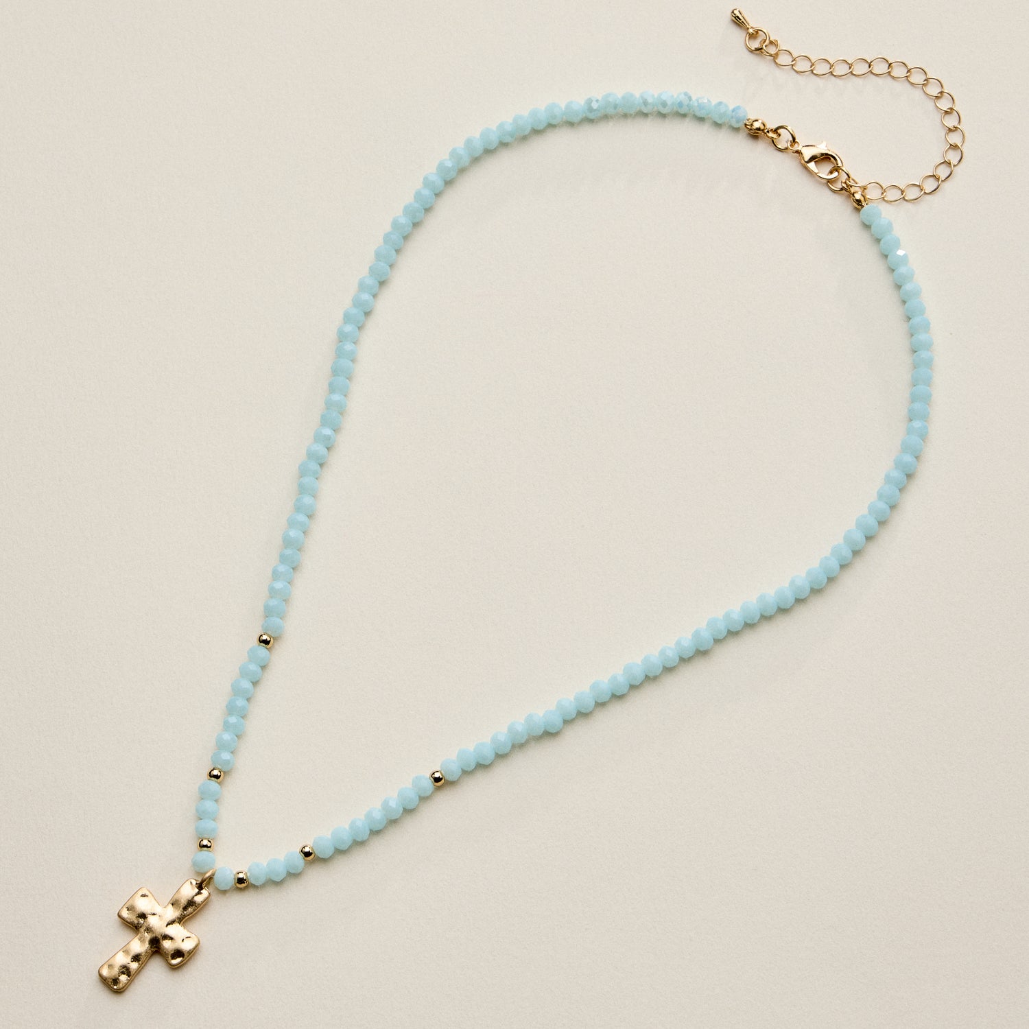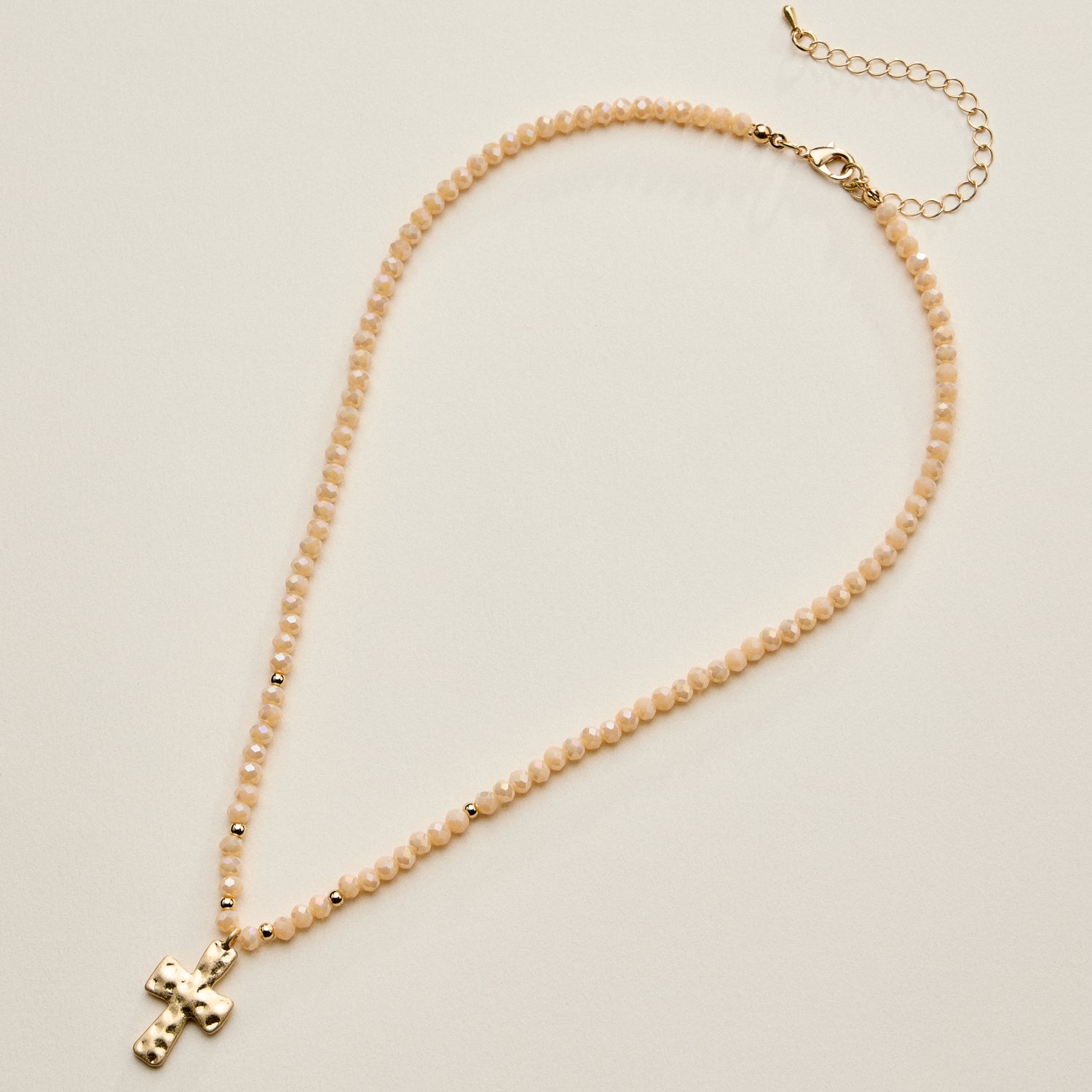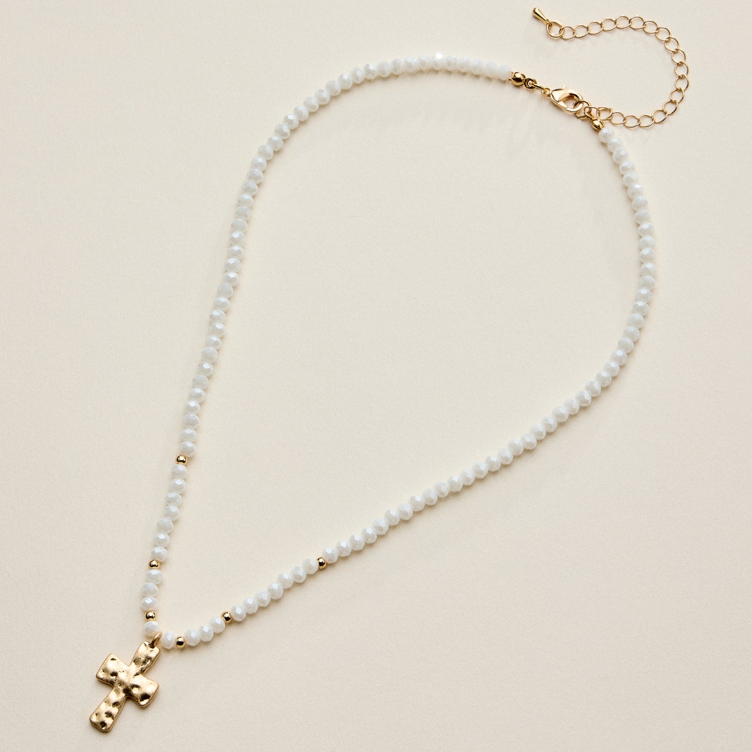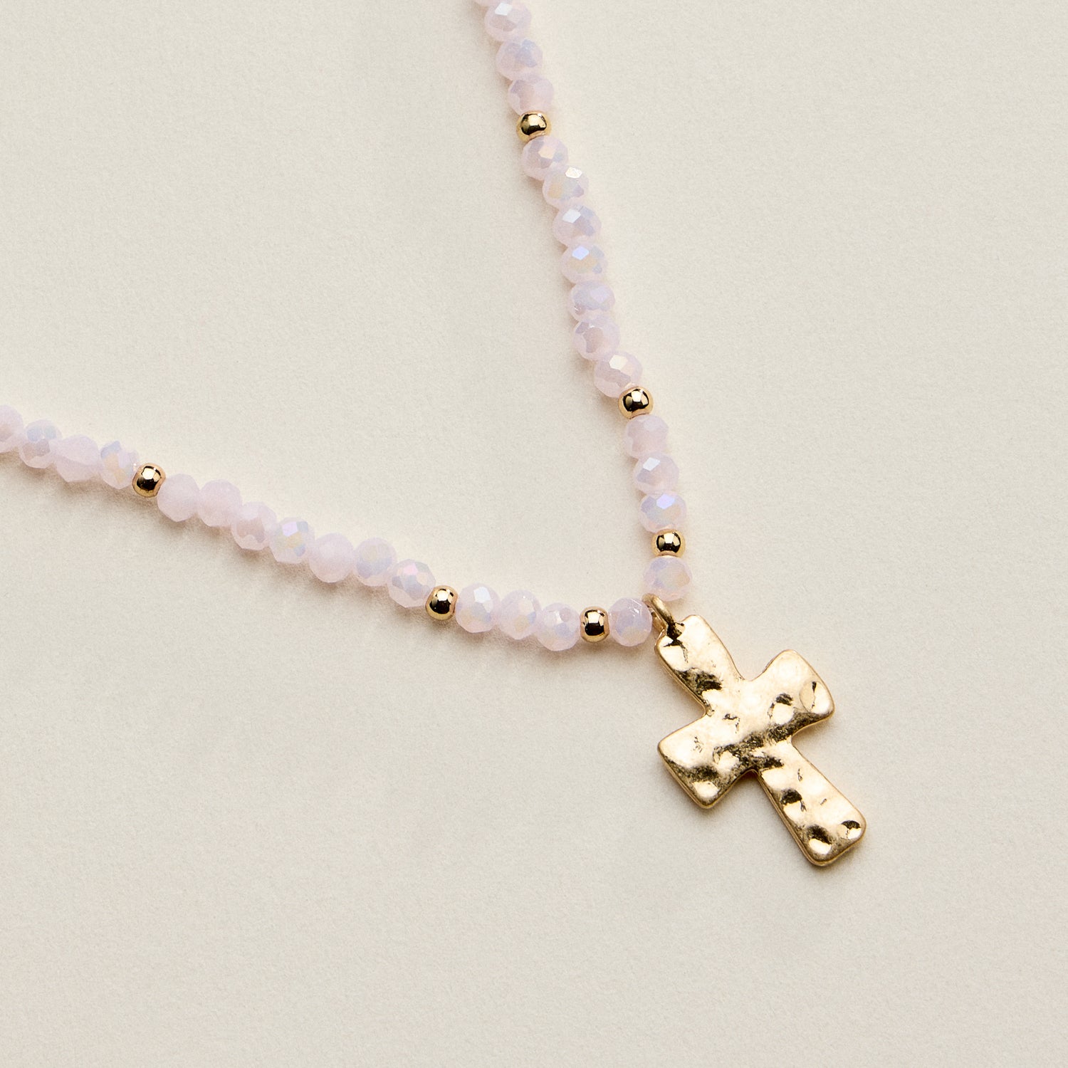 Beaded Cross Necklace for Women – Faceted Bead Necklace with Hammered Cross Pendant
