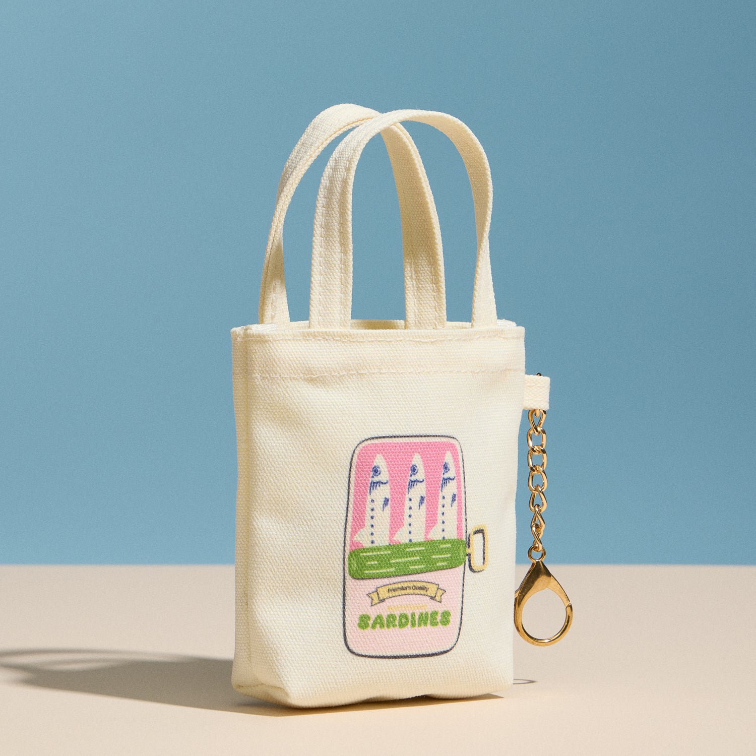 A charming mini canvas pouch featuring a playful, retro-inspired sardine graphic with a vintage food-label aesthetic. Designed in the same compact size and style as our other mini pouches, it’s perfect for holding coins, keys, lip balm, or small essentials. Finished with a short carry handle and lightweight canvas construction, this pouch is both practical and giftable.