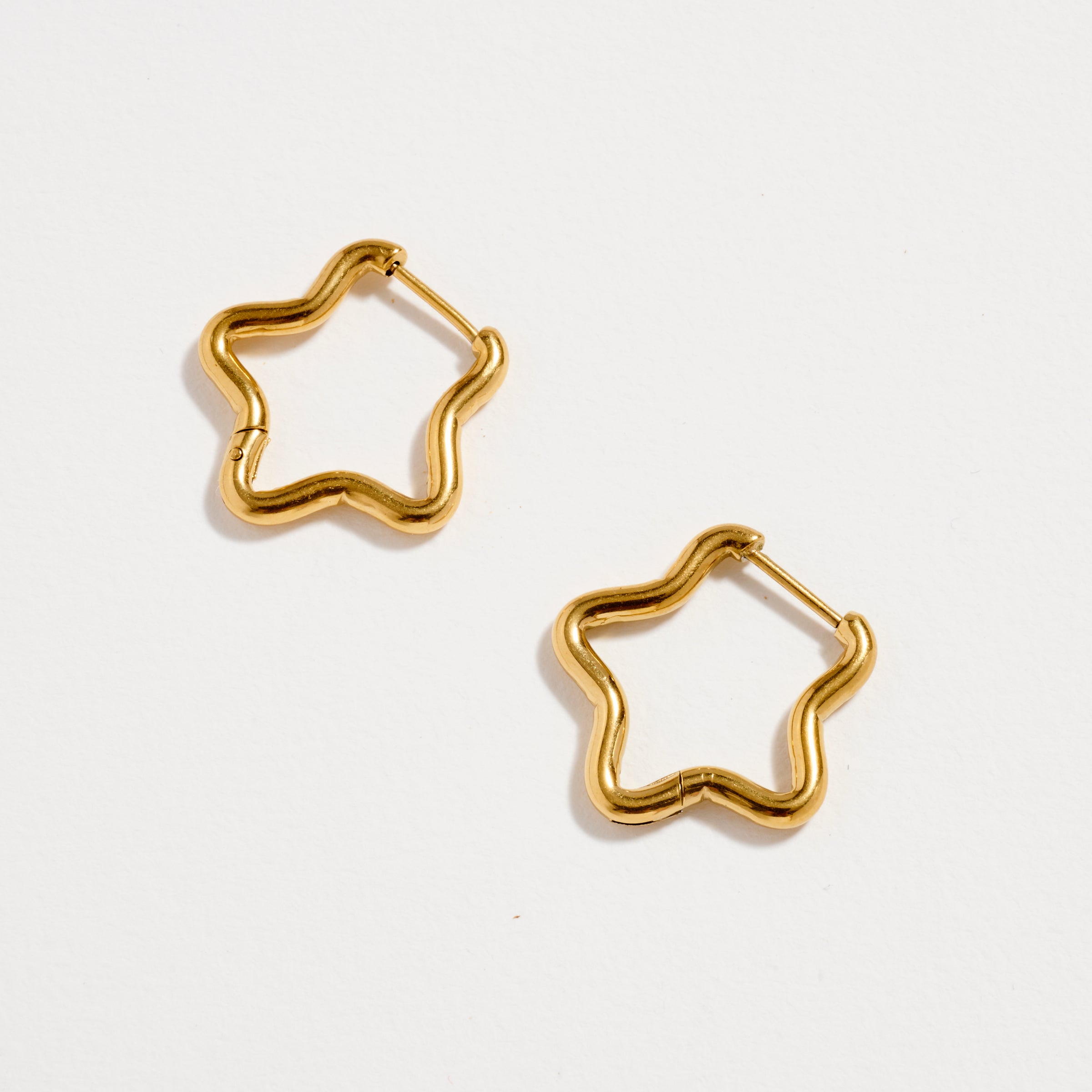 Playful yet minimal, these Stainless Steel Star Outline Hoop Earrings bring a touch of modern charm to any look. Featuring a wavy star silhouette in polished gold-tone stainless steel, they strike the perfect balance between fun and sophistication. Lightweight, hypoallergenic, and tarnish-free — these hoops are perfect for everyday wear or as a unique accent for a night out.
