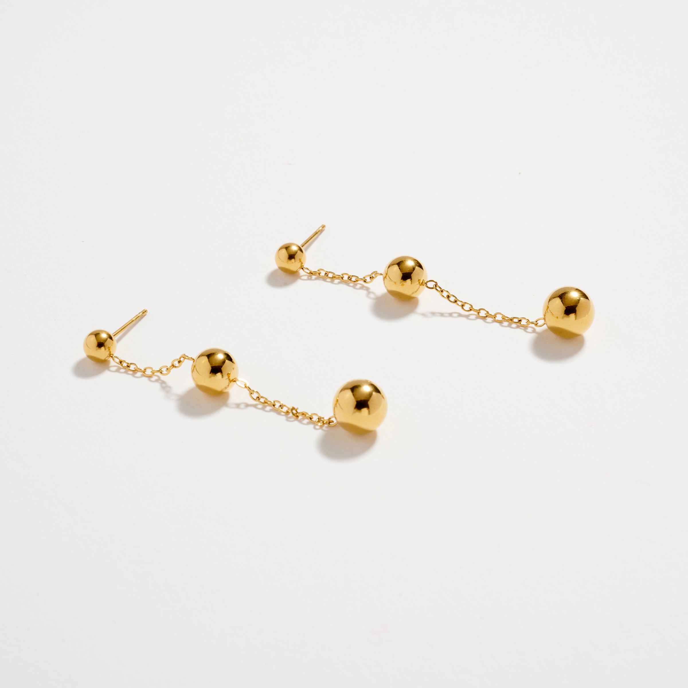 Modern, sleek, and effortlessly elegant — these Stainless Steel Triple Ball Drop Earrings feature a delicate chain adorned with polished gold spheres that catch the light beautifully with every move. Lightweight yet eye-catching, they bring a refined touch to any outfit from day to night. Crafted from hypoallergenic, tarnish-free stainless steel, these earrings are gentle on sensitive skin and made for long-lasting shine.