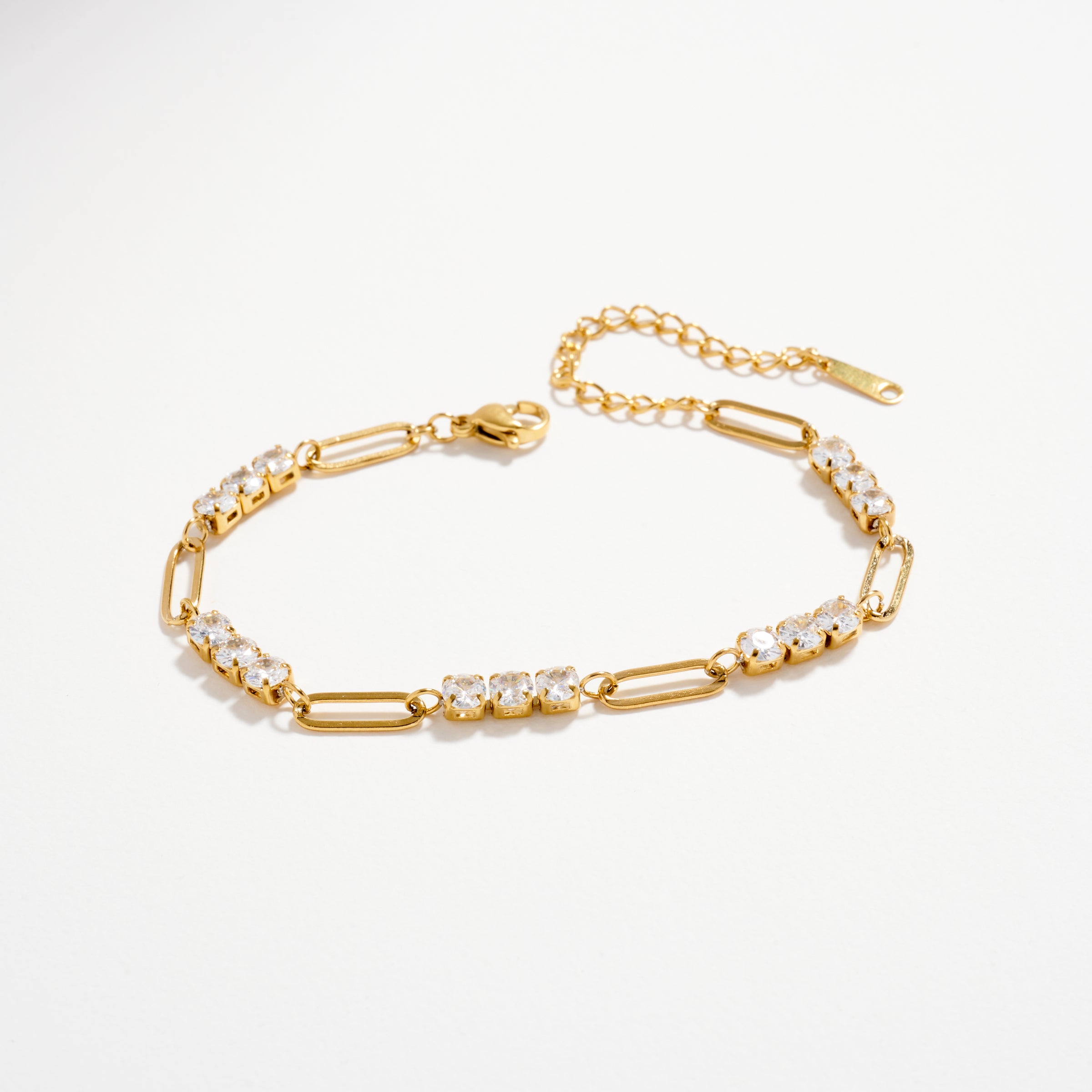 Gold-Tone CZ Link Chain Bracelet – Dainty Adjustable Crystal Paperclip Bracelet