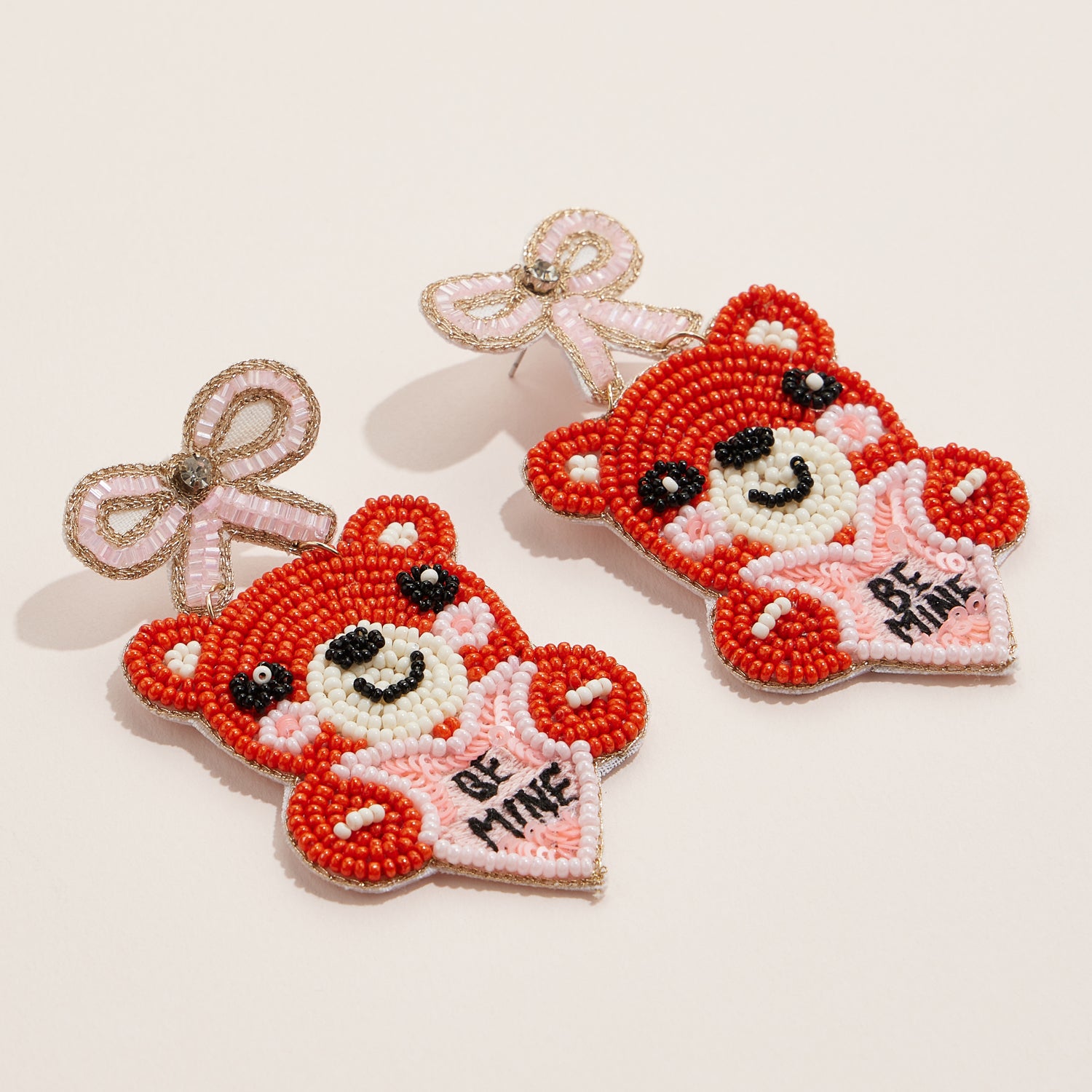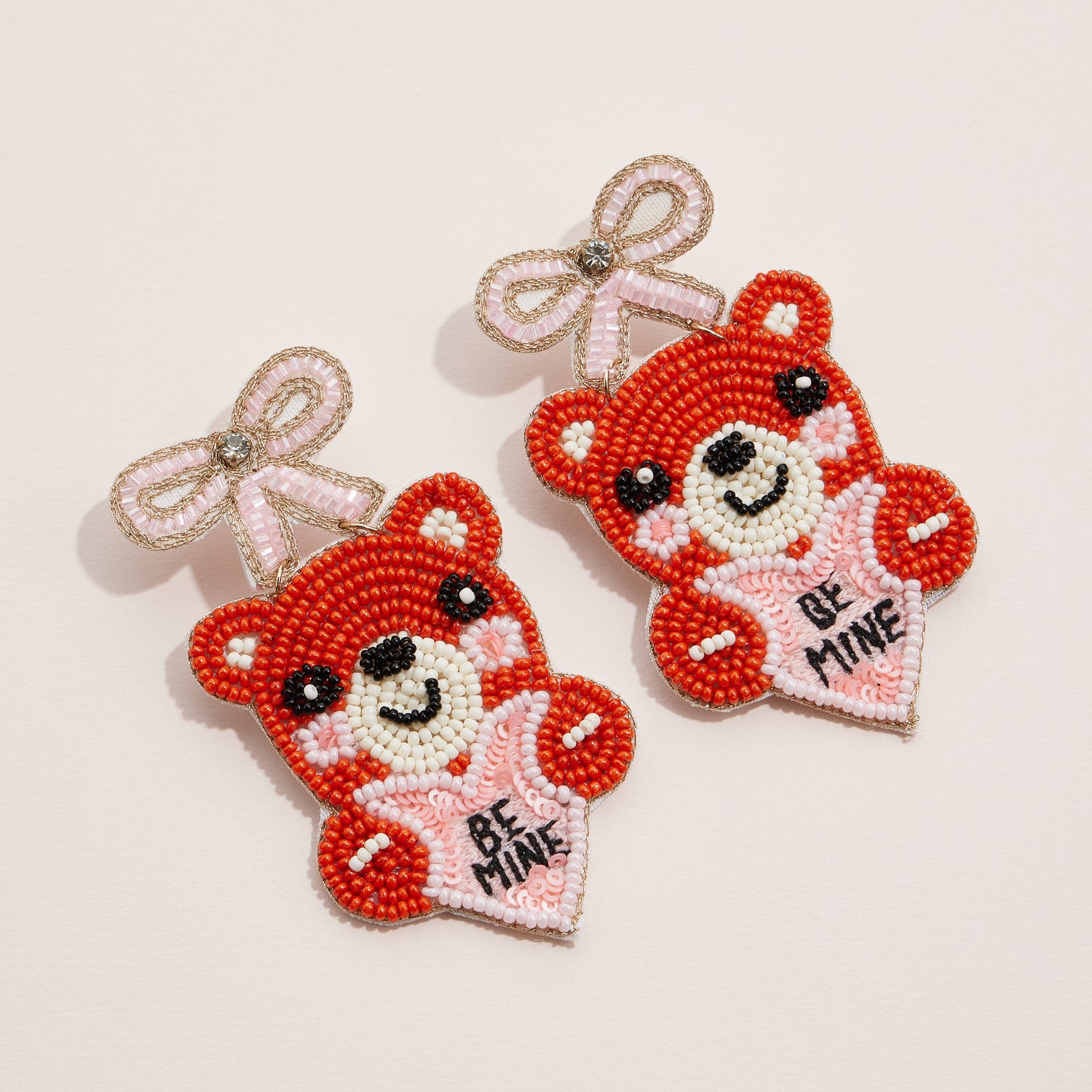 Beaded "Be Mine" Teddy Bear Statement Earrings