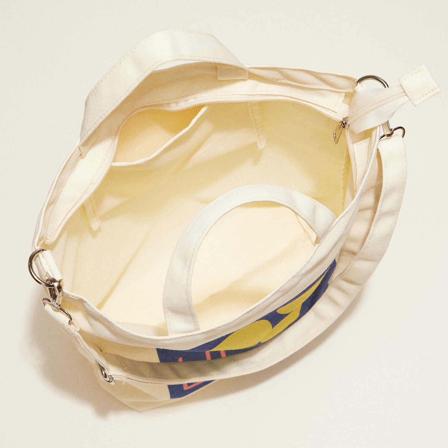 Cream Canvas Tote Bag with Lemon Graphic – Zippered Shoulder & Crossbody Everyday Bag