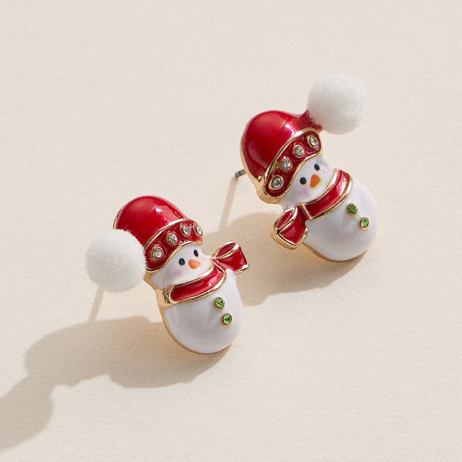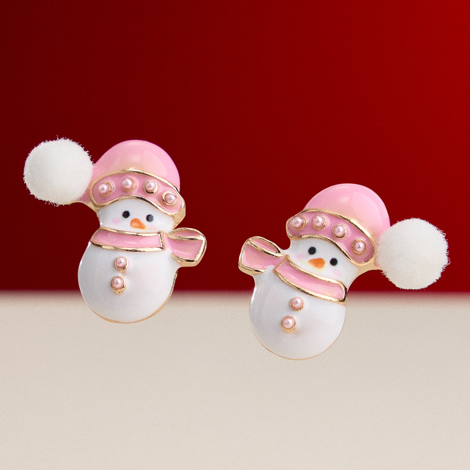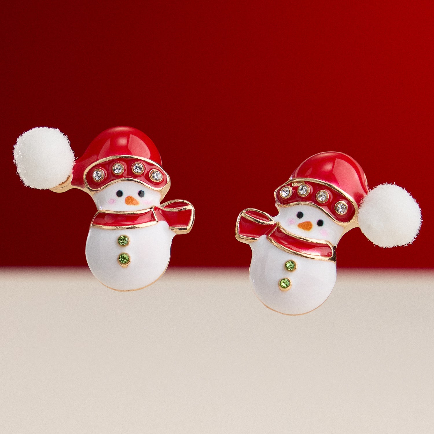 Add festive charm to your look with these adorable snowman enamel stud earrings. Featuring pink or red hats with pom-poms, scarves, and gold-tone accents, they're the perfect holiday accessory. Lightweight and fun, these studs measure approx. 0.75" and are made from glossy enamel.