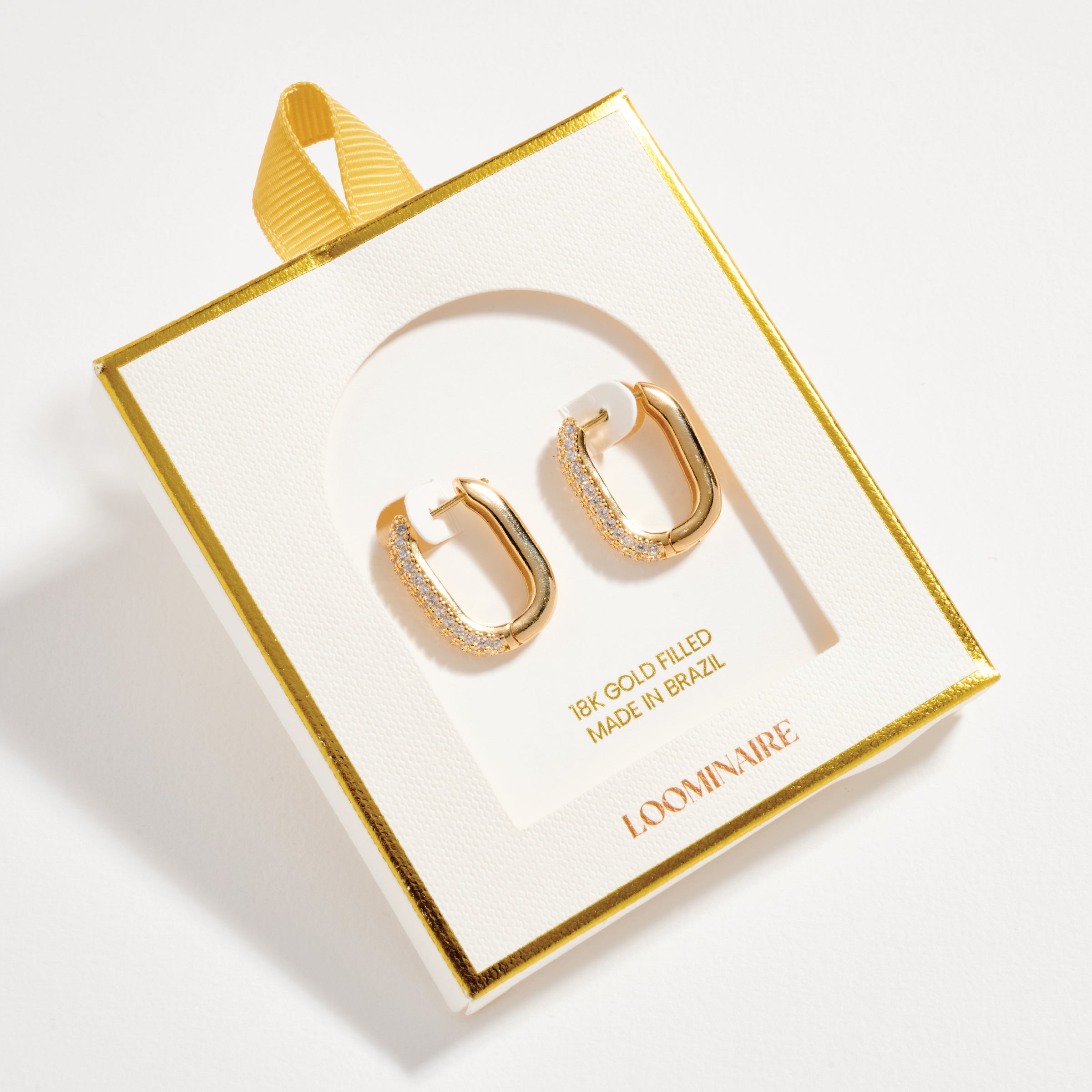 Elevate your everyday look with these chic rectangular hoop earrings. Crafted in durable gold filled metal and adorned with sparkling cubic zirconia in a pave setting, these huggie-style hoops offer the perfect blend of modern design and timeless elegance. Lightweight and comfortable, they’re ideal for daily wear or special occasions, adding just the right amount of shine to any outfit.