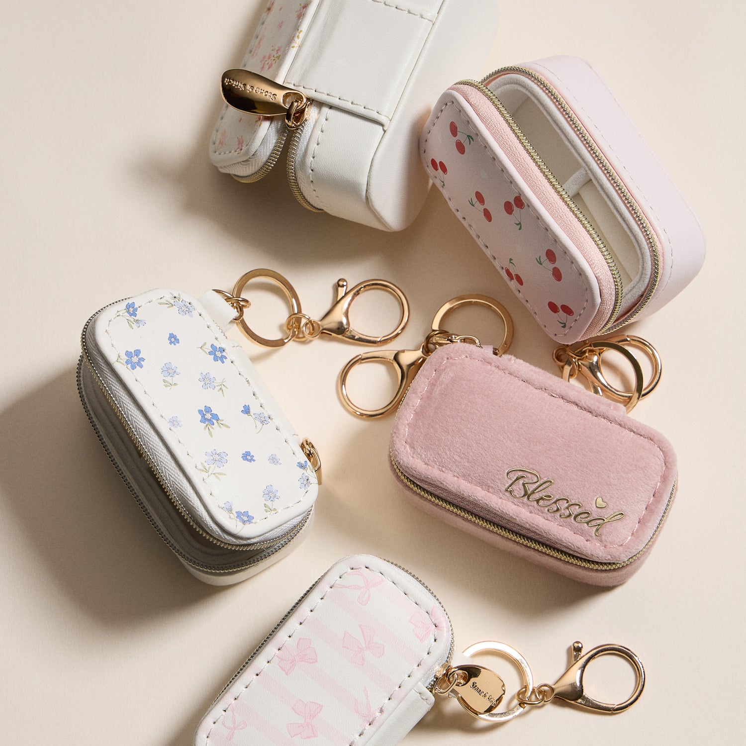 Mini Jewelry Travel Case with Keychain – Pink Velvet “Blessed” Design