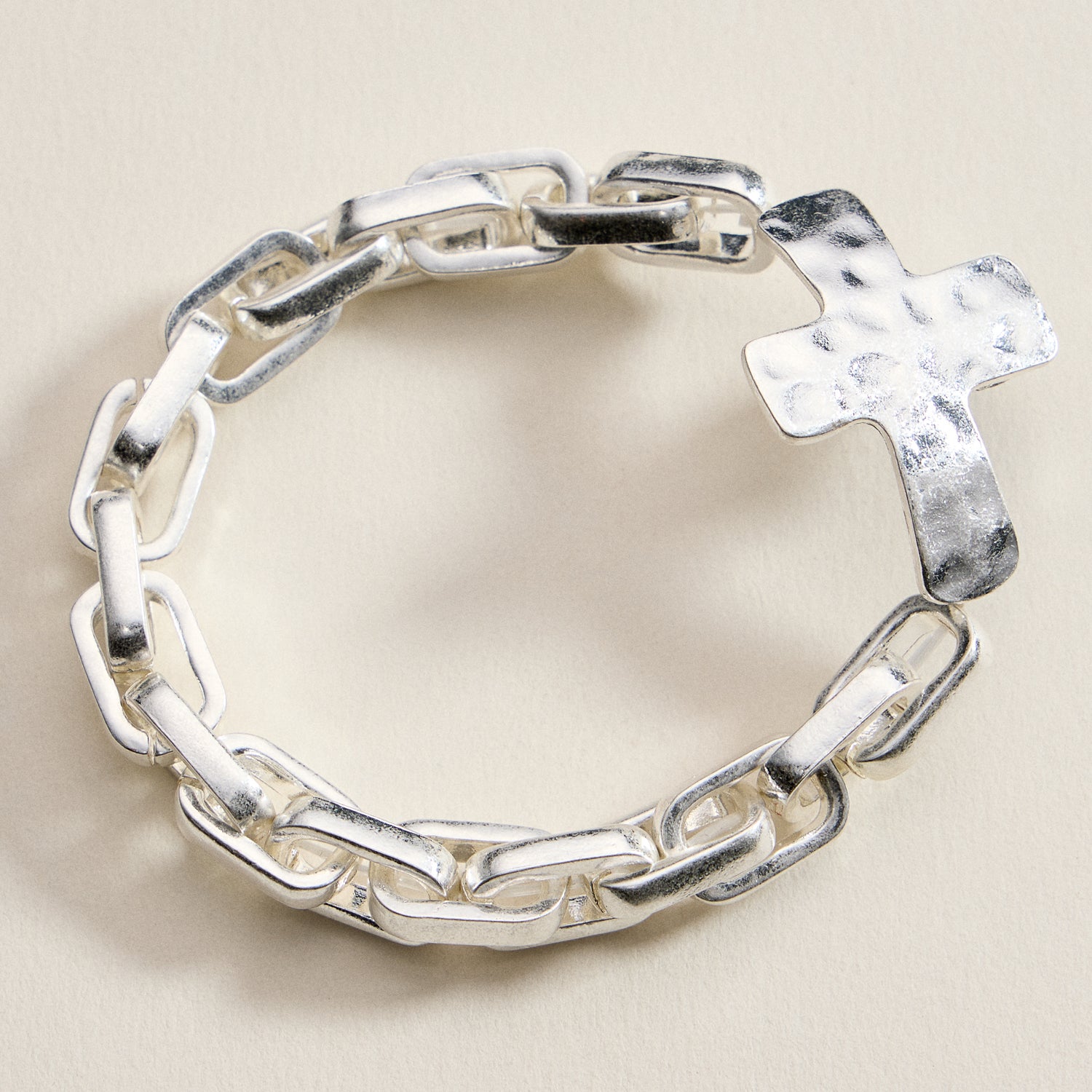 Hammered Cross Charm Chain Bracelet – Gold, Silver & Two-Tone Statement Link Jewelry