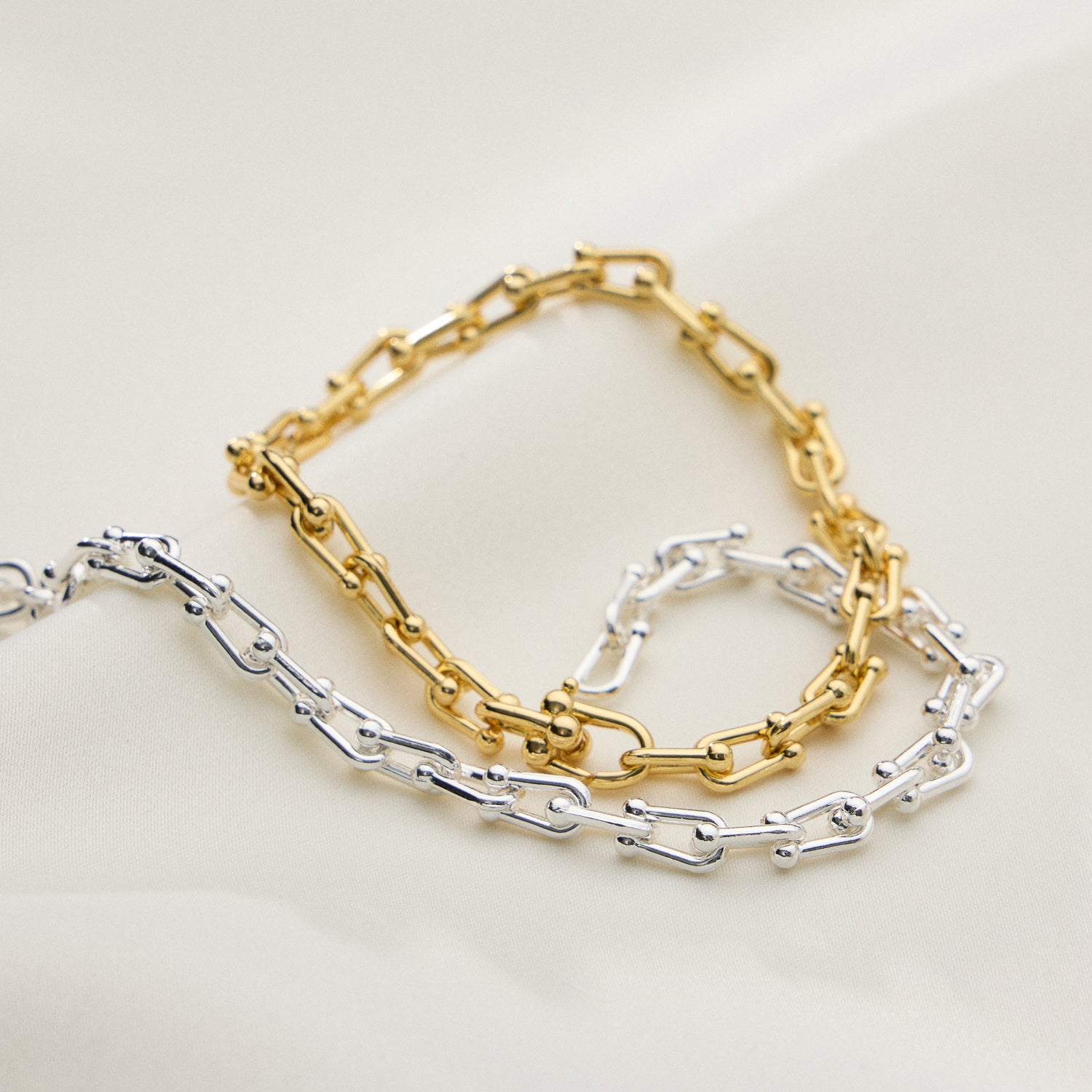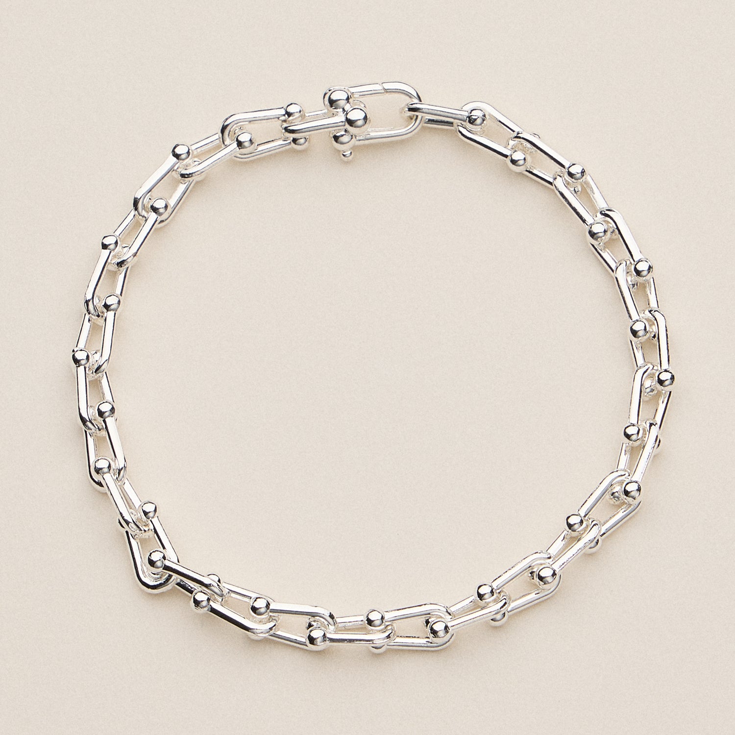 Bold yet refined, this chunky link chain bracelet makes a confident statement. Featuring a unique double-link structure accented with polished bead details, it comes in radiant gold or sleek silver. The bracelet’s secure clasp ensures a comfortable, fixed fit—ideal for everyday wear or elevating a night-out look.