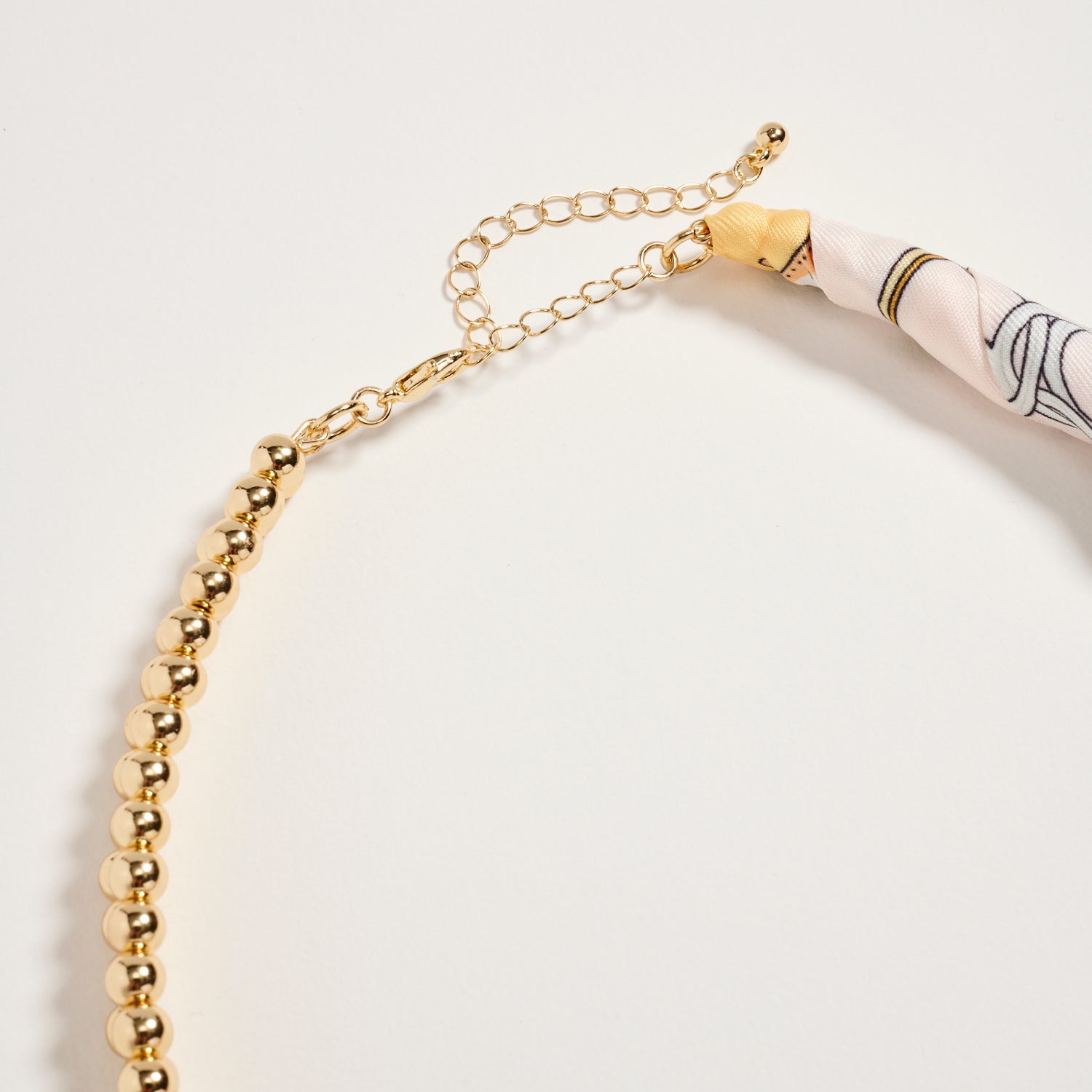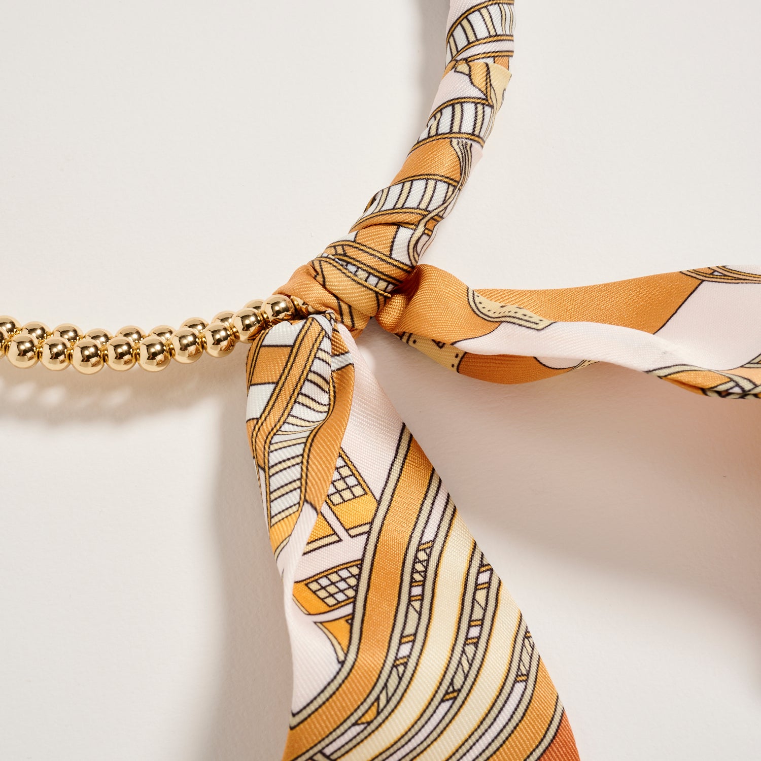 Gold Beaded Necklace with Silk Scarf Tie – Adjustable Chain Statement Neck Piece for Women