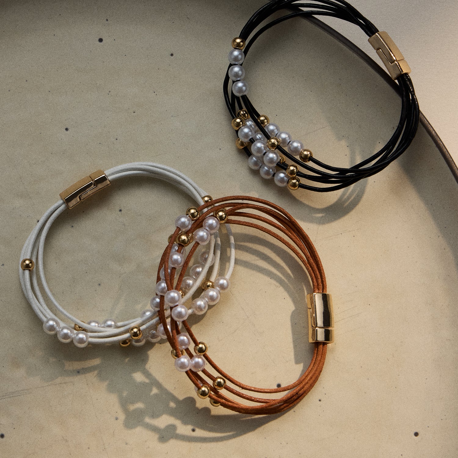 Each strand wraps gracefully around the wrist, secured by a sleek magnetic clasp for quick and easy wear. Whether worn solo or stacked with other bracelets, this piece brings elegance and dimension to your accessory collection. Available in a variety of color options to match your personal style.