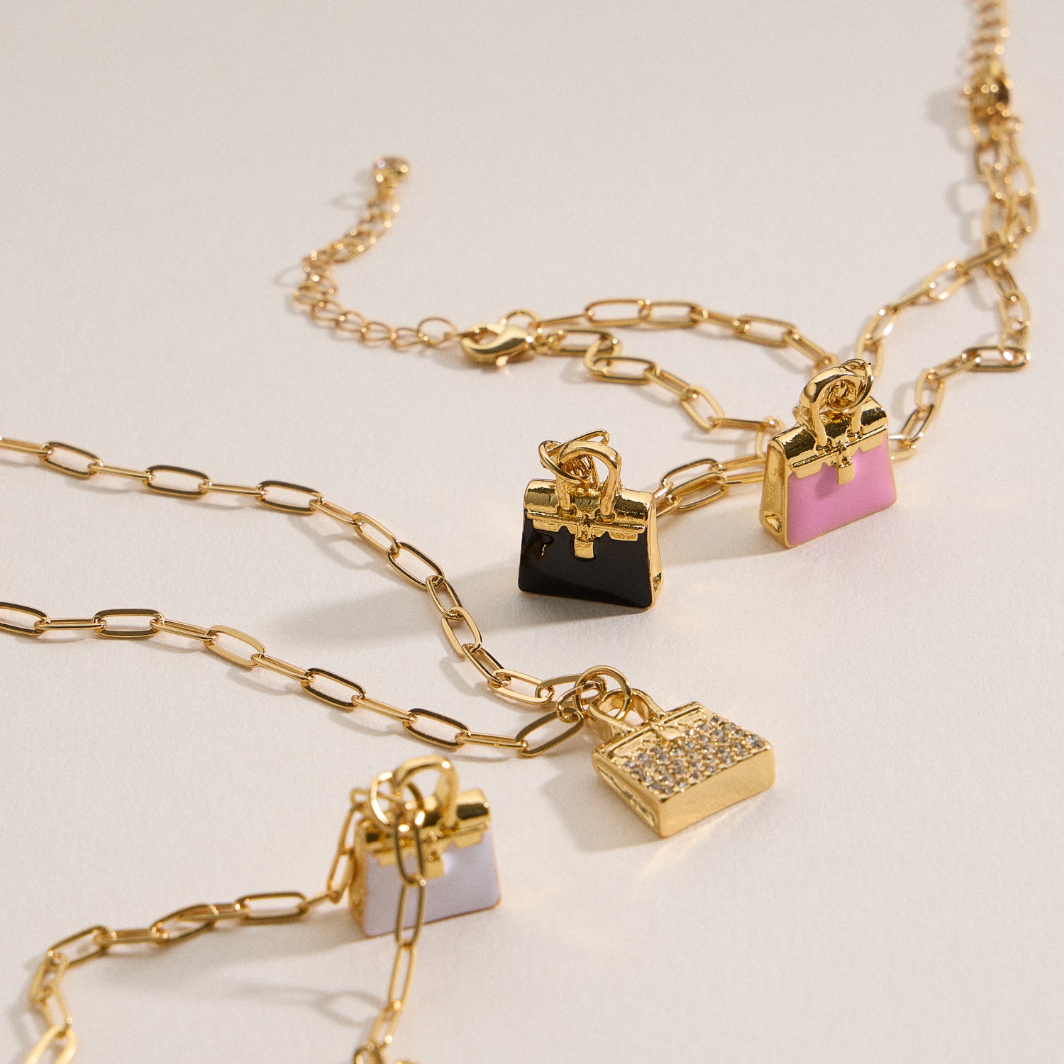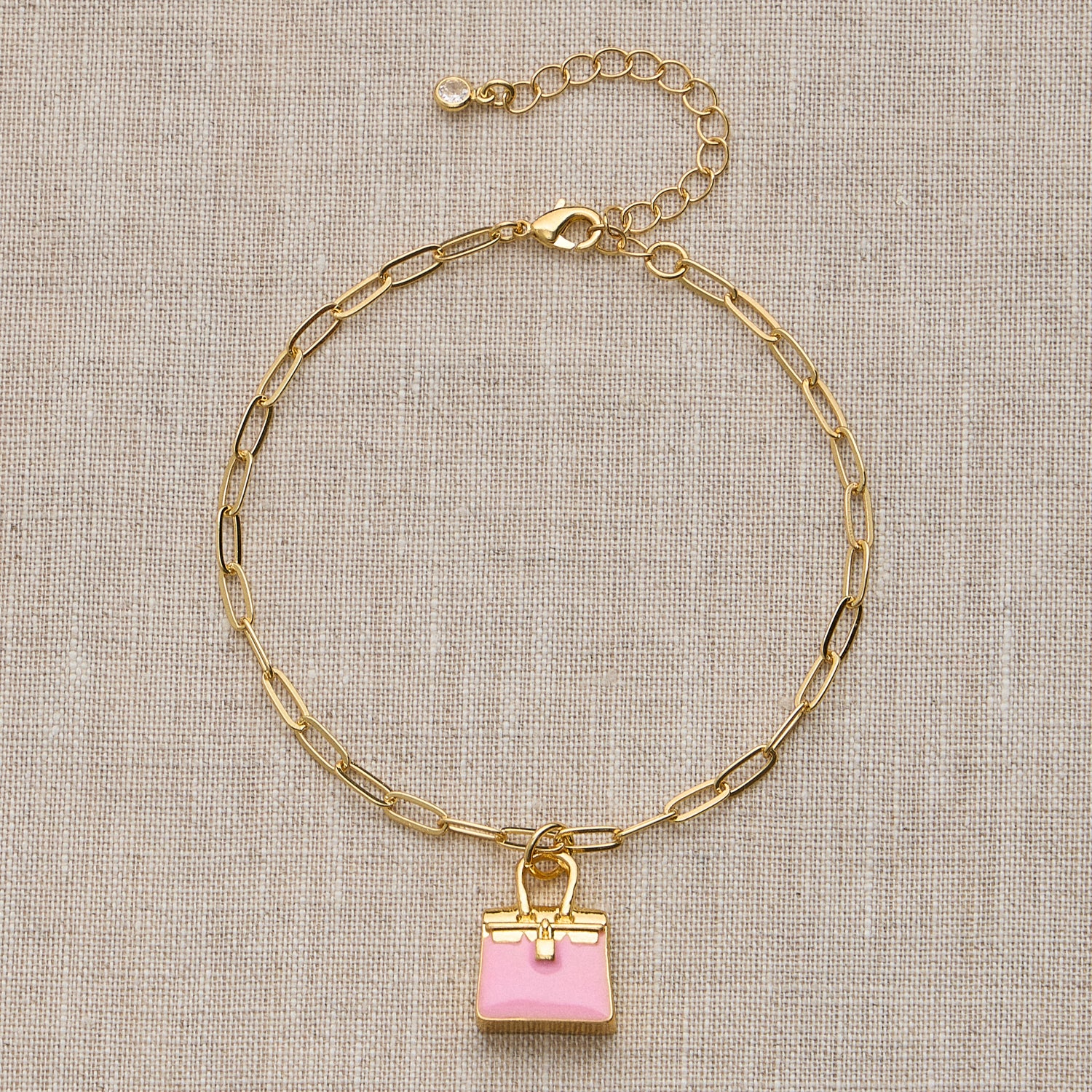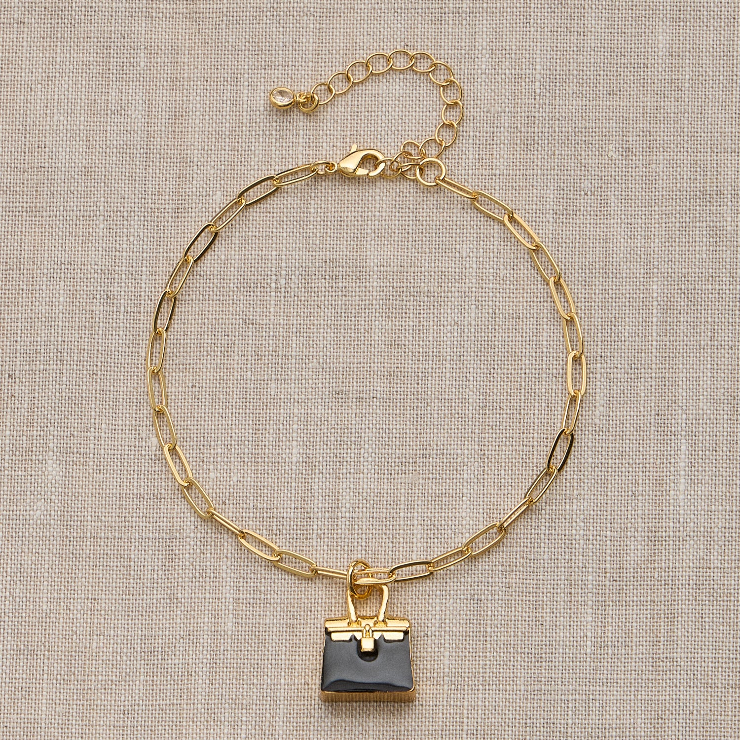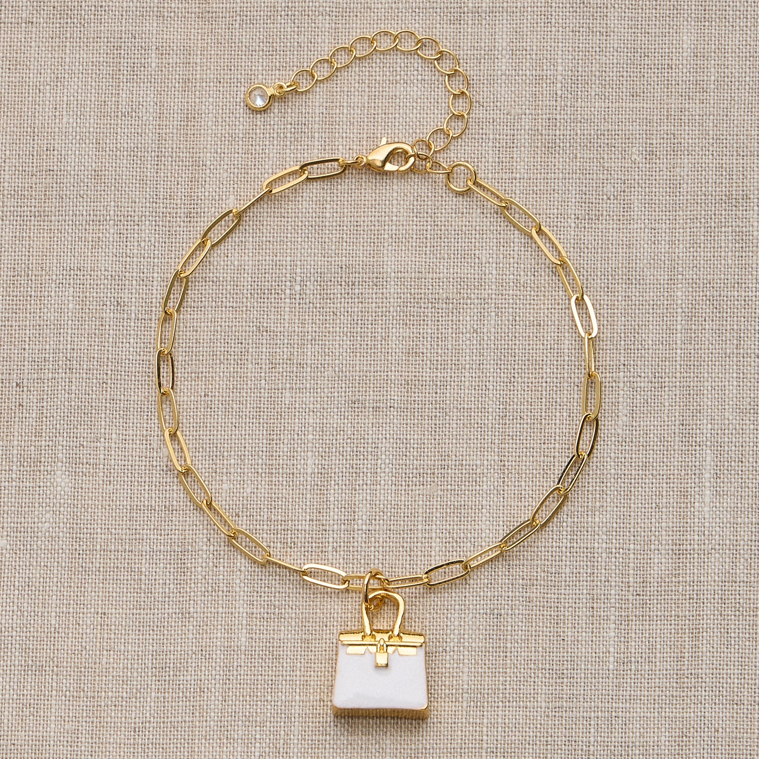 Elevate your accessory game with this gold chain bracelet featuring a mini purse charm. With its modern paperclip link design and playful handbag detail, it's a stylish accent for any outfit—perfect for stacking or wearing solo.