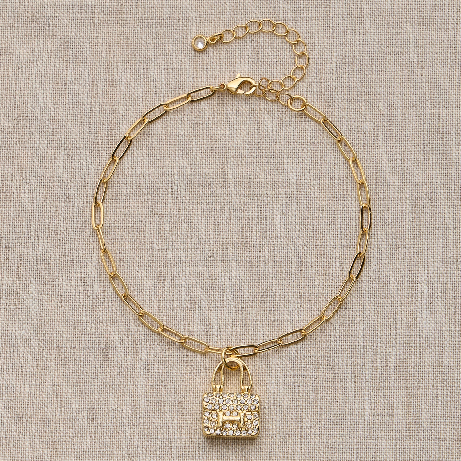 Adjustable Gold Chain Bracelet with Crystal Bag Charm