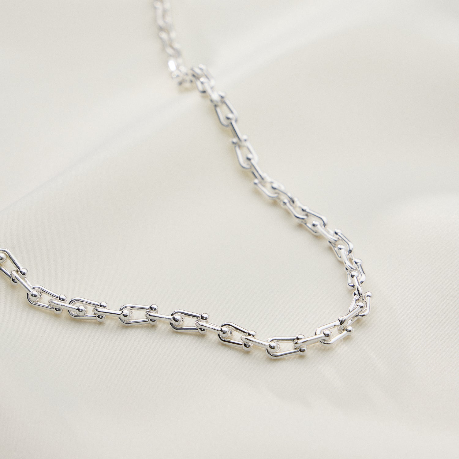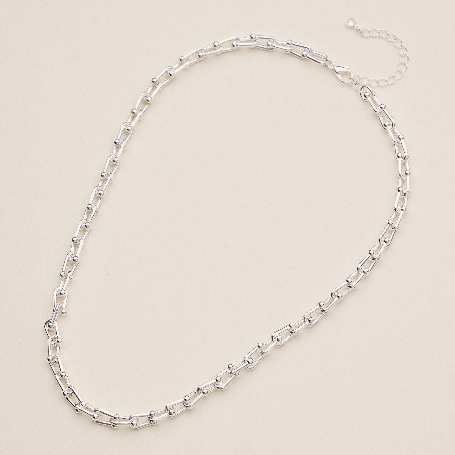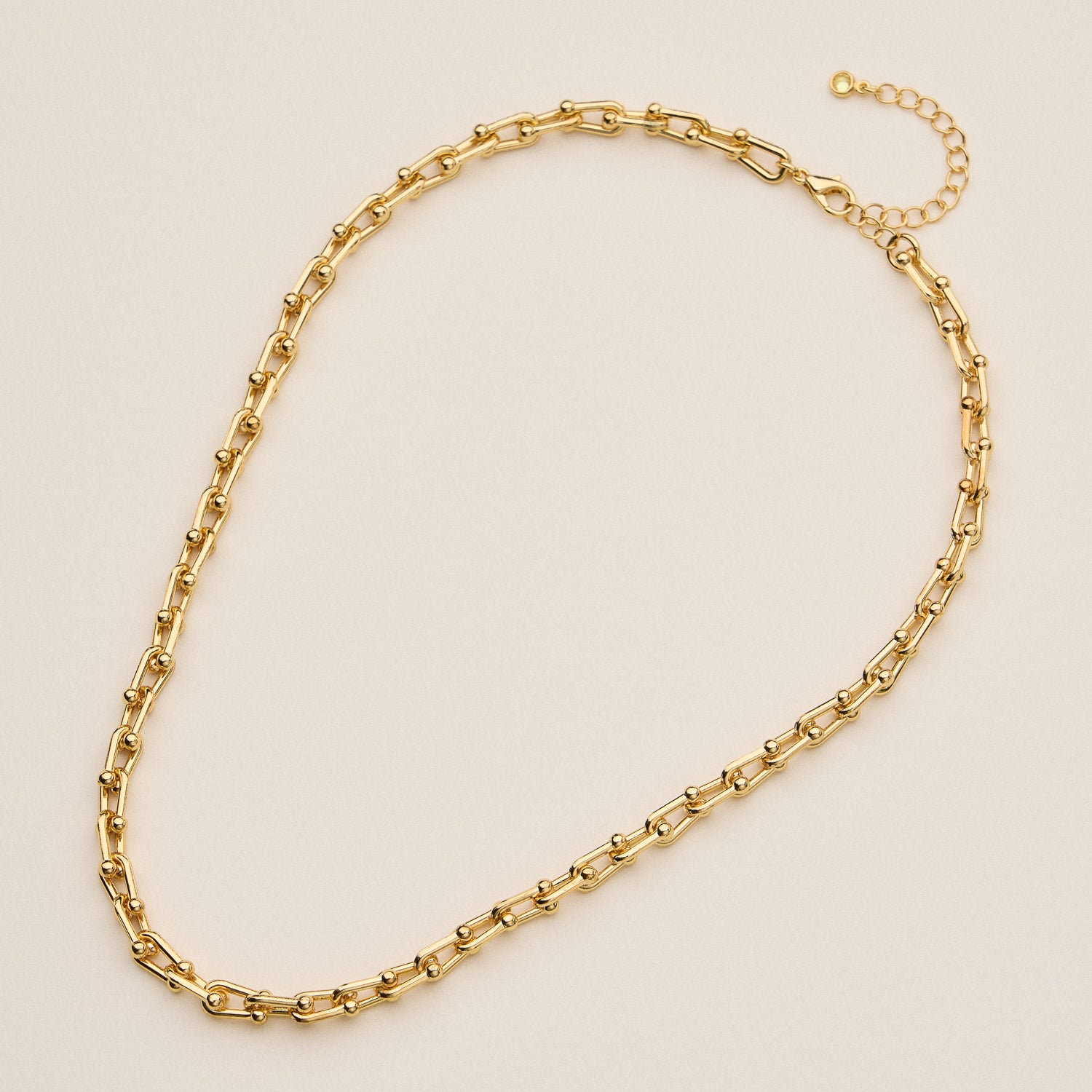 Bold yet refined, this 18K gold dipped statement necklace features interlocking rounded bar links for a modern industrial twist. With its adjustable length and striking silhouette, it effortlessly transitions from casual layers to standout solo wear. Available in both gold and silver tones to suit every style.