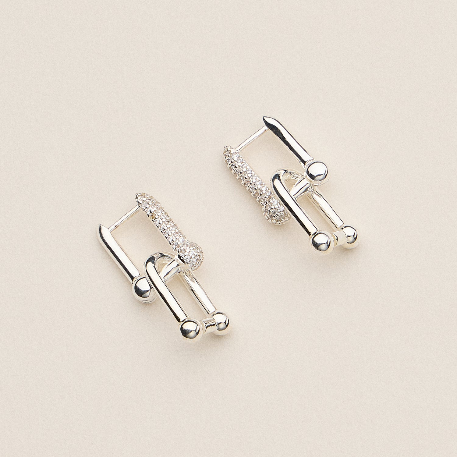 Bold meets brilliance in these 18K gold dipped pave lock stud earrings. Featuring an industrial-inspired carabiner shape with pave crystal detailing, they blend structure with sparkle. Available in gold and silver finishes, these unique earrings make a modern statement that’s both edgy and elegant—perfect for day-to-night styling.