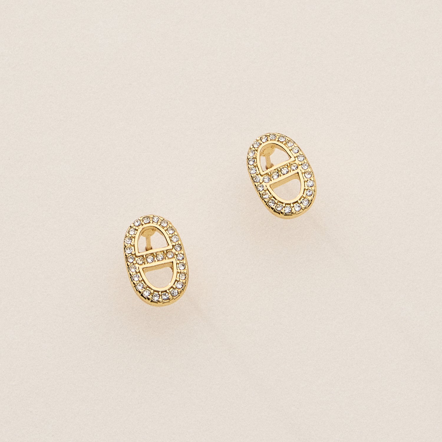 Gold Dipped Pave Oval Link Studs - 18K Gold CZ