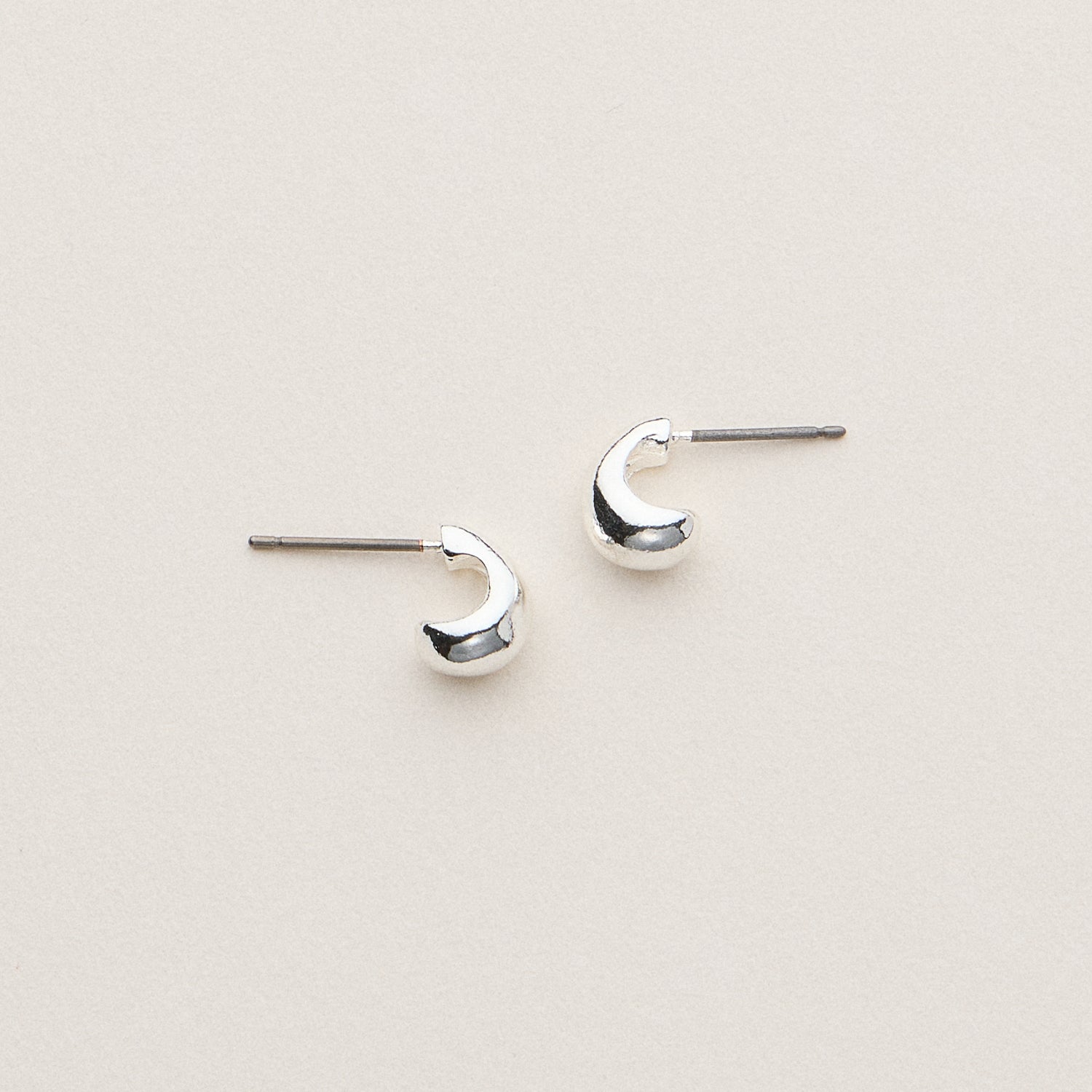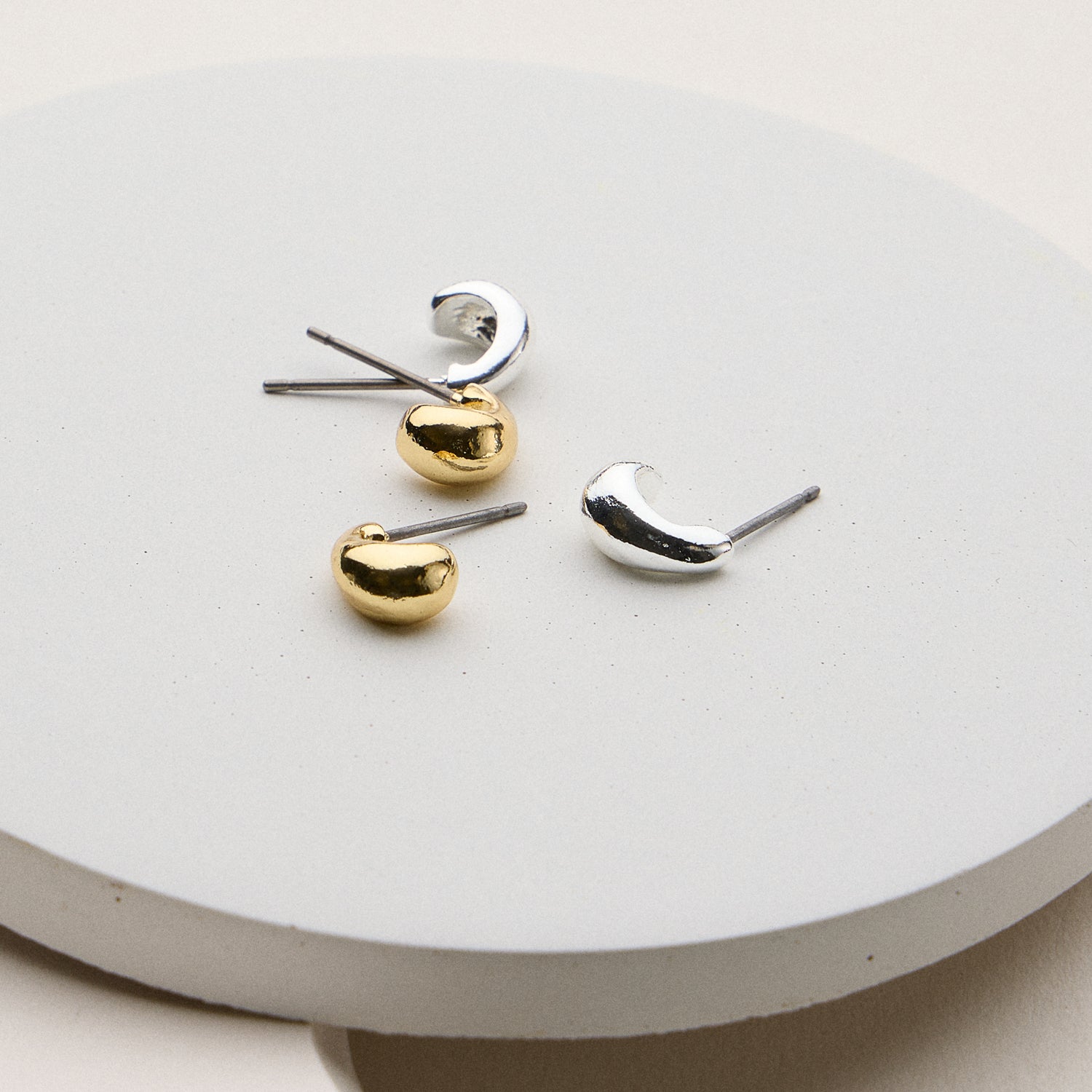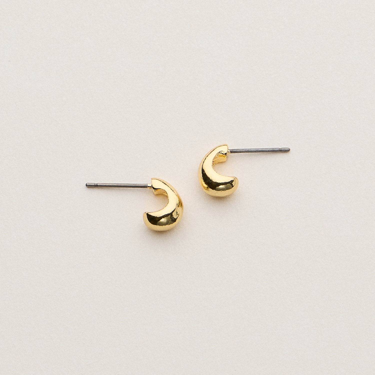 Petite with punch, these 18K gold dipped mini chunky studs are the perfect go-to for effortless edge. With a sculptural crescent shape and high-polish finish, they add just the right amount of boldness to any look. Available in gold and silver finishes, they’re ideal for layering or wearing solo for a sleek, modern vibe.