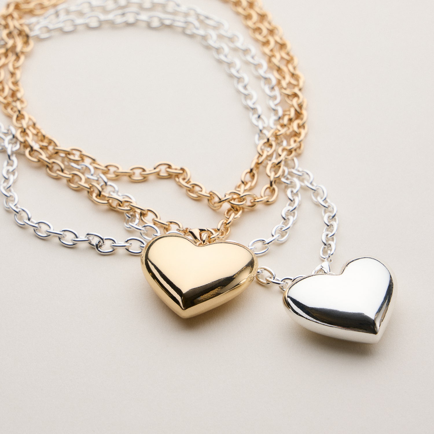 Bold and romantic, this chunky heart pendant necklace features a smooth, sculpted heart charm on a double chain for extra impact. Dipped in 18K gold and adjustable for the perfect fit, it's a standout piece that brings playful charm and polish to any look. Whether layered or worn solo, this necklace makes a statement of love and confidence—ideal for daily wear or gifting.
