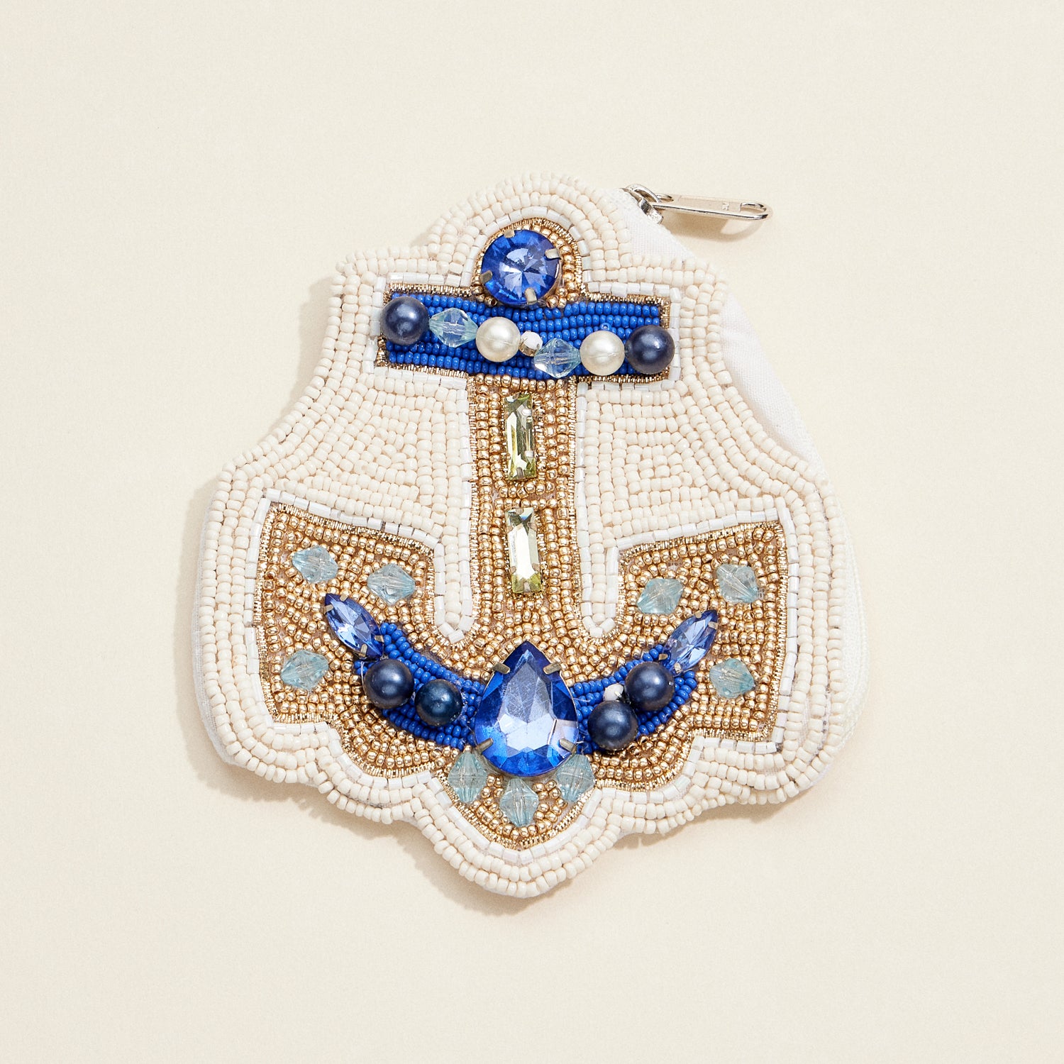 Beaded Anchor Coin Purse – Nautical-Themed Embellished Zip Pouch
