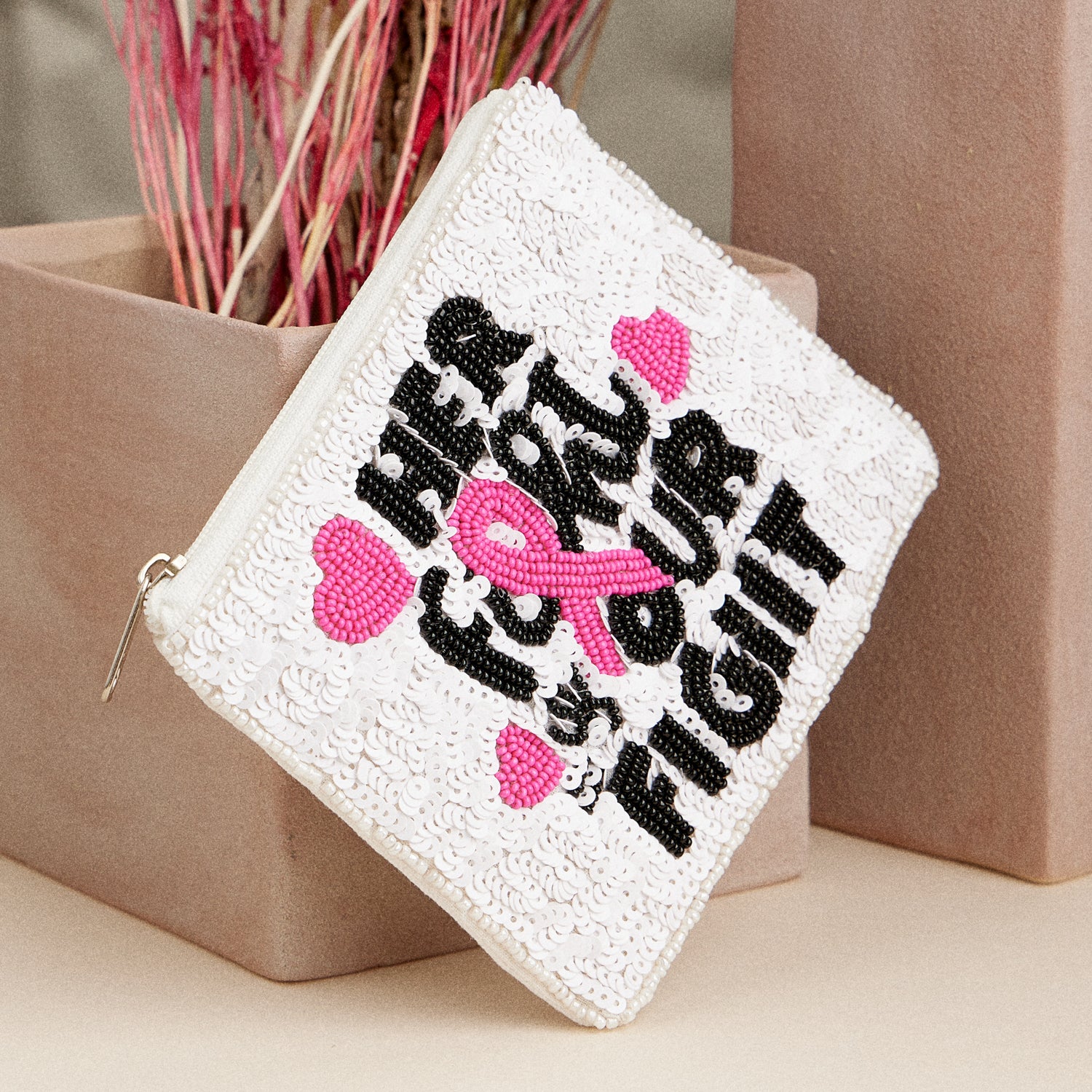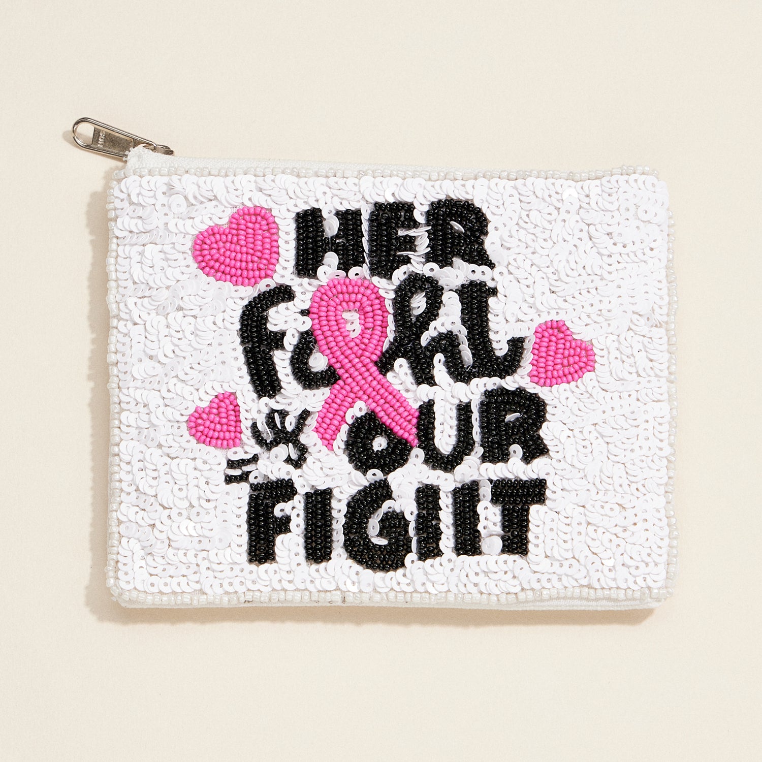 Beaded Breast Cancer Awareness Zip Pouch – "Her Fight Is Our Fight" Clutch