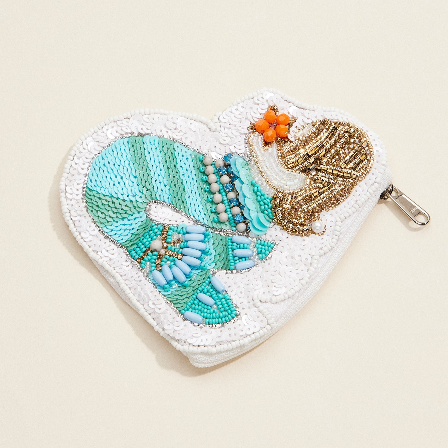 Beaded Mermaid Heart Coin Purse – Sequin Embellished Zip Pouch
