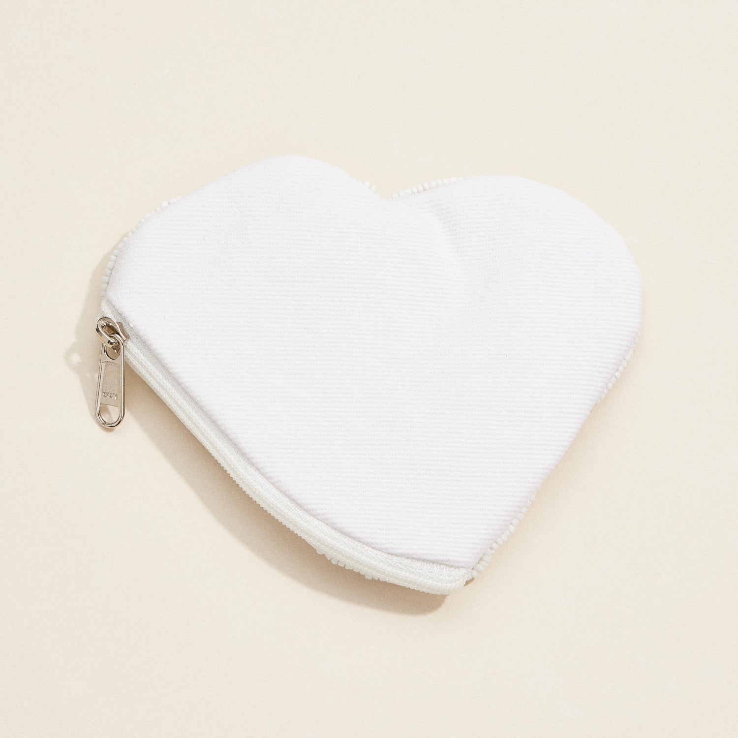 Add a touch of ocean magic to your accessories with this beaded mermaid heart coin purse. Designed in a heart shape, this stunning zip pouch features an intricate mermaid motif crafted from shimmering beads, sequins, and embroidery in shades of turquoise, gold, and white. The back is made of soft white fabric for a clean, elegant contrast. Compact yet stylish, this purse is perfect for storing coins, cash, or small essentials while adding a whimsical charm to your everyday carry.