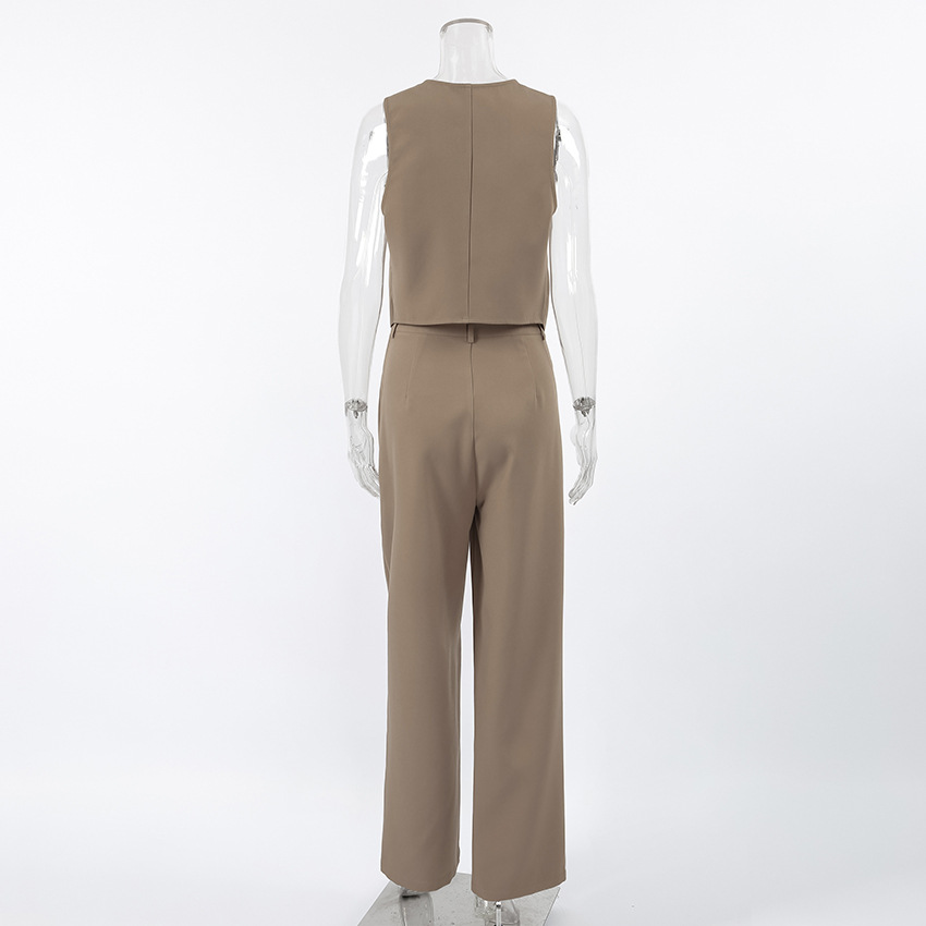 Upgrade your wardrobe with this effortlessly stylish sleeveless vest and trousers set. Designed for both casual and elegant occasions, this set features a tailored fit that enhances your silhouette while ensuring comfort. The khaki tone adds a touch of sophistication, making it perfect for work, social gatherings, or a polished everyday look.