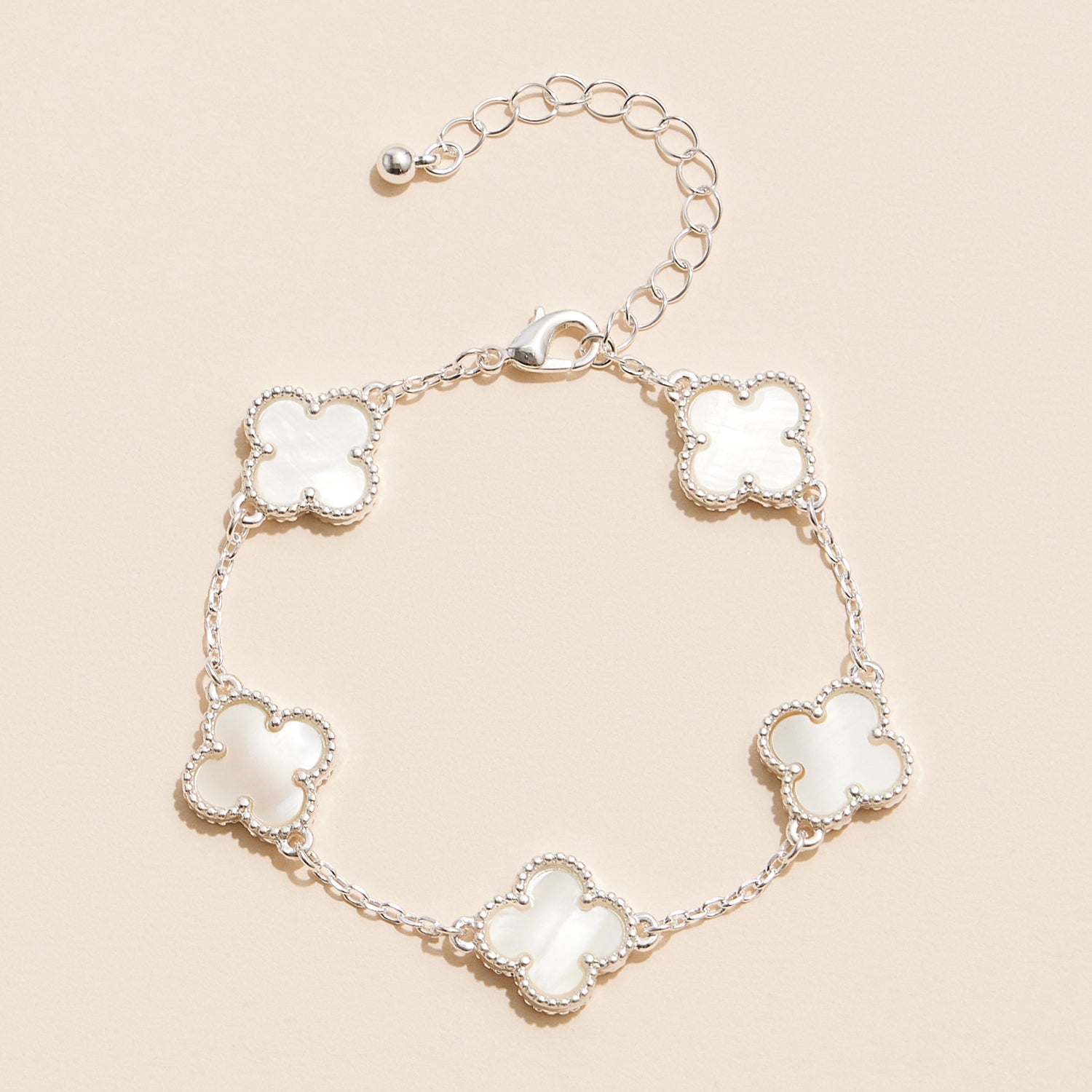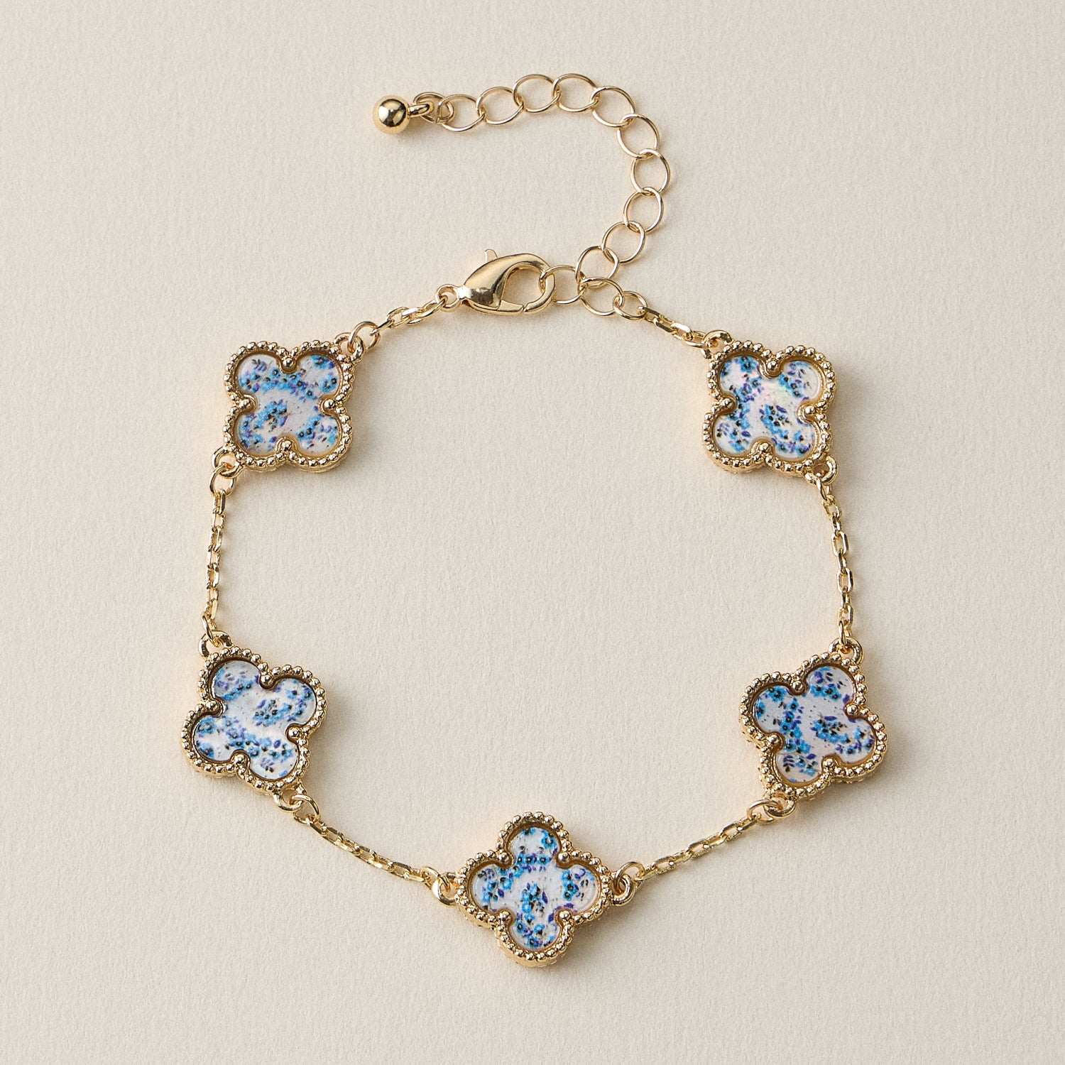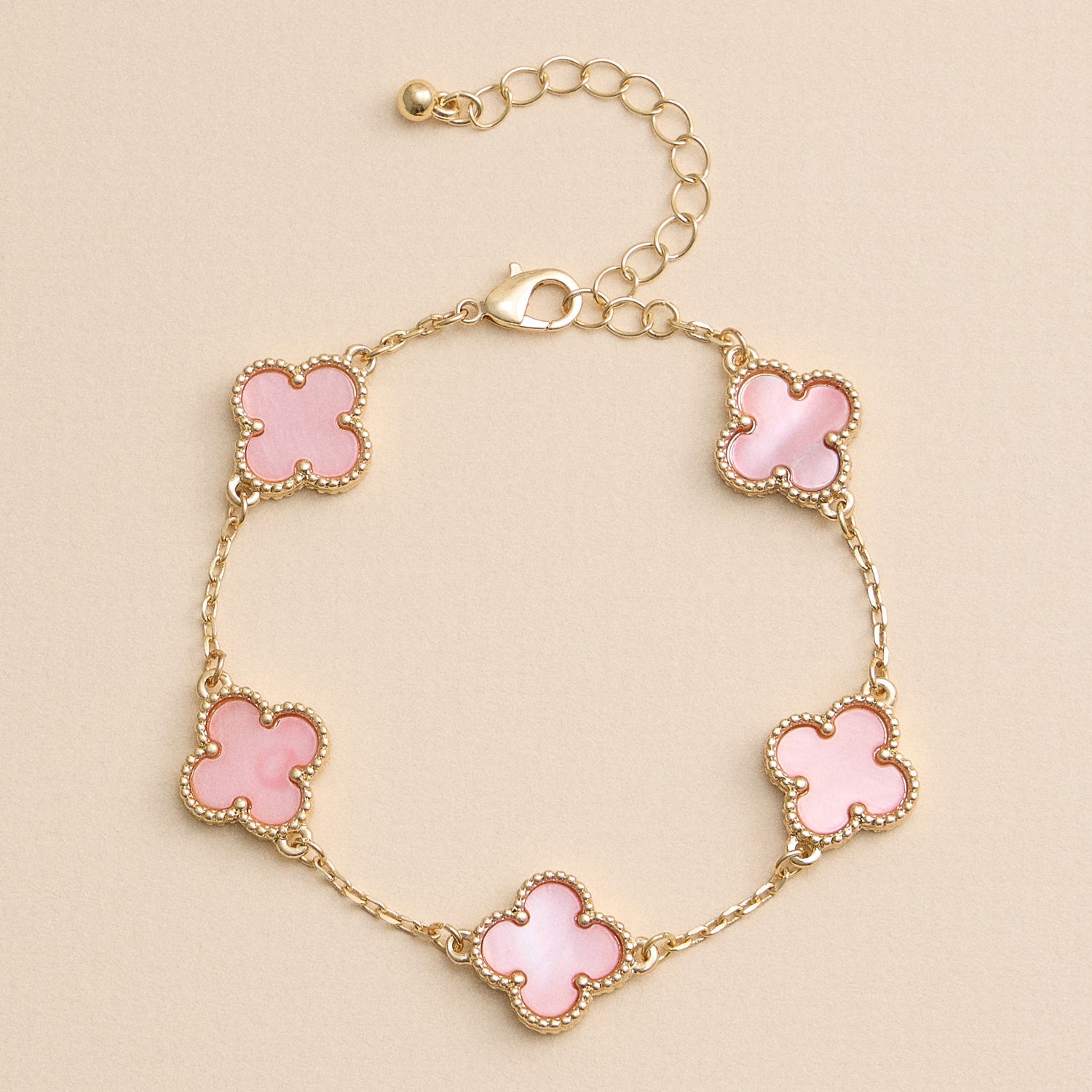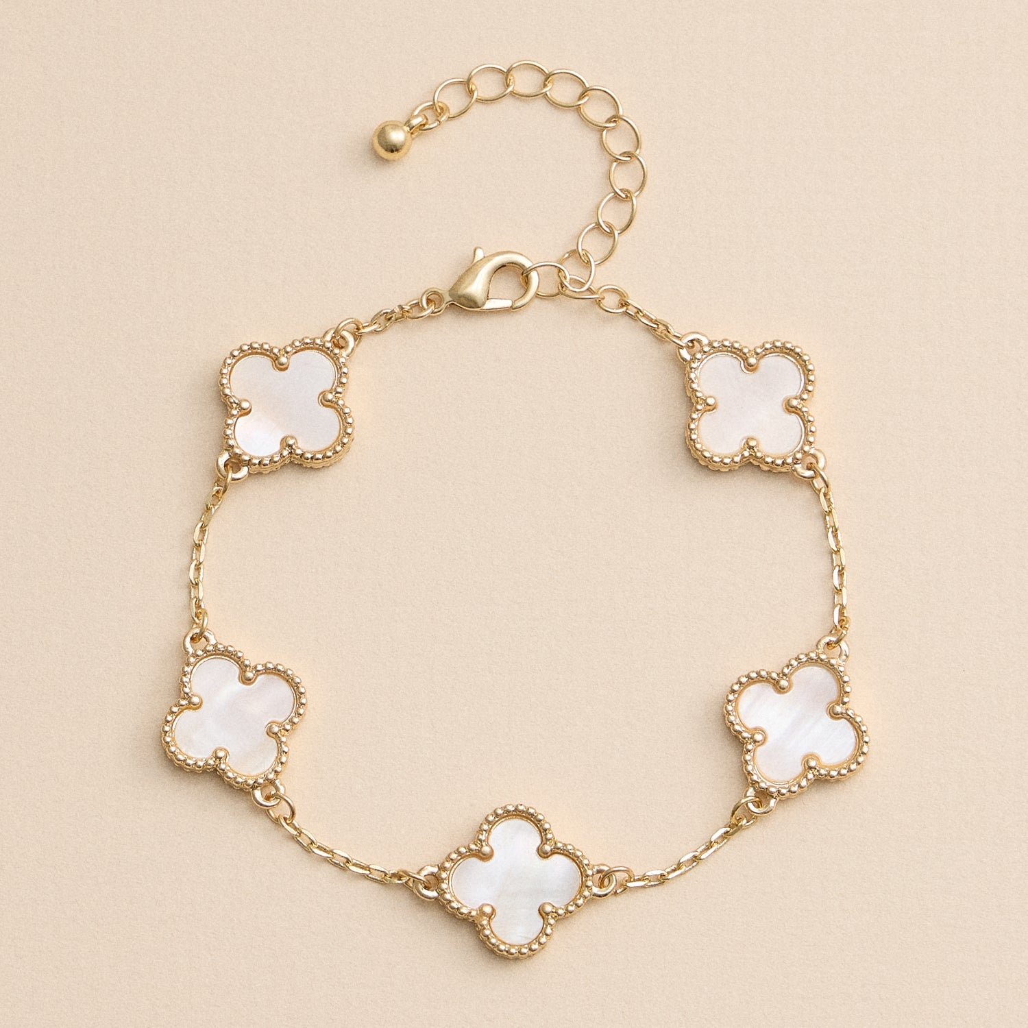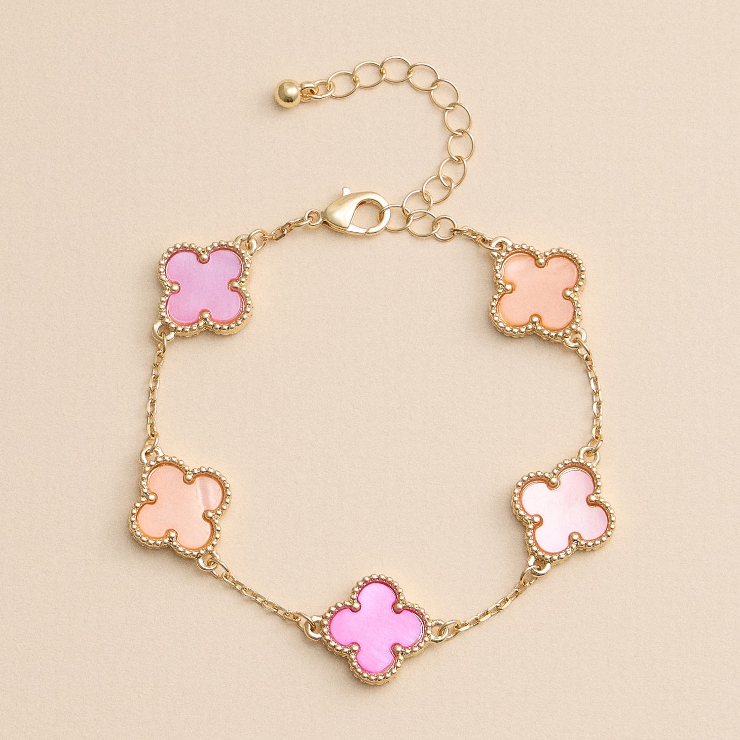 Brighten up your jewelry collection with this vibrant shell charm bracelet, featuring high-shine shell inlays framed in elegant gold beaded detailing. Each charm boasts a soft, symmetrical silhouette that brings a playful yet polished touch to your everyday look.