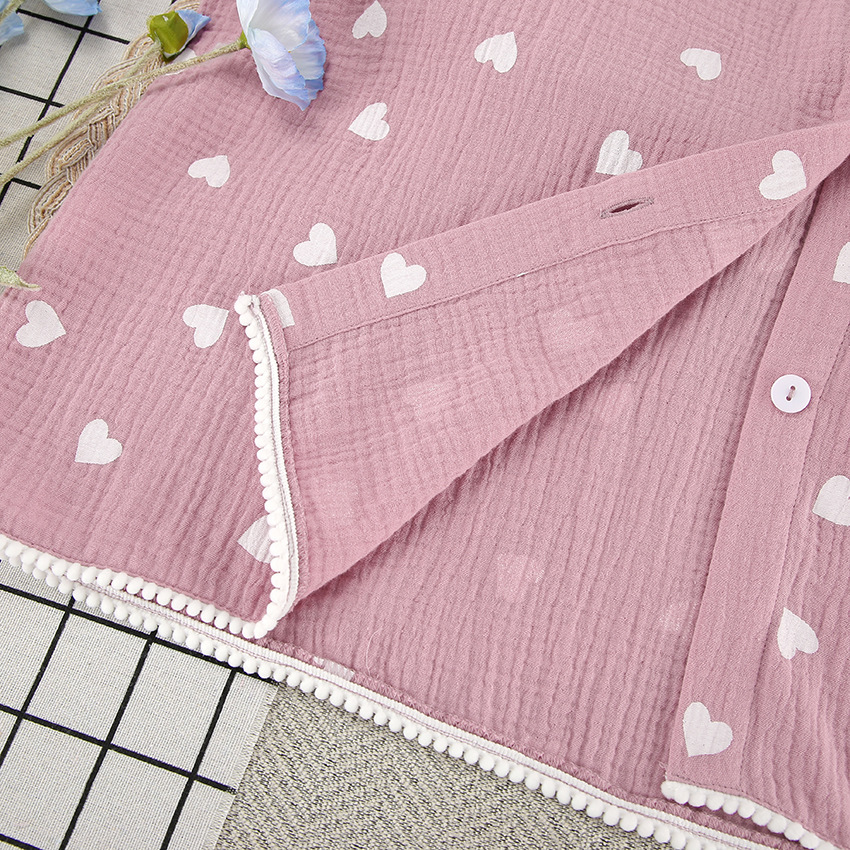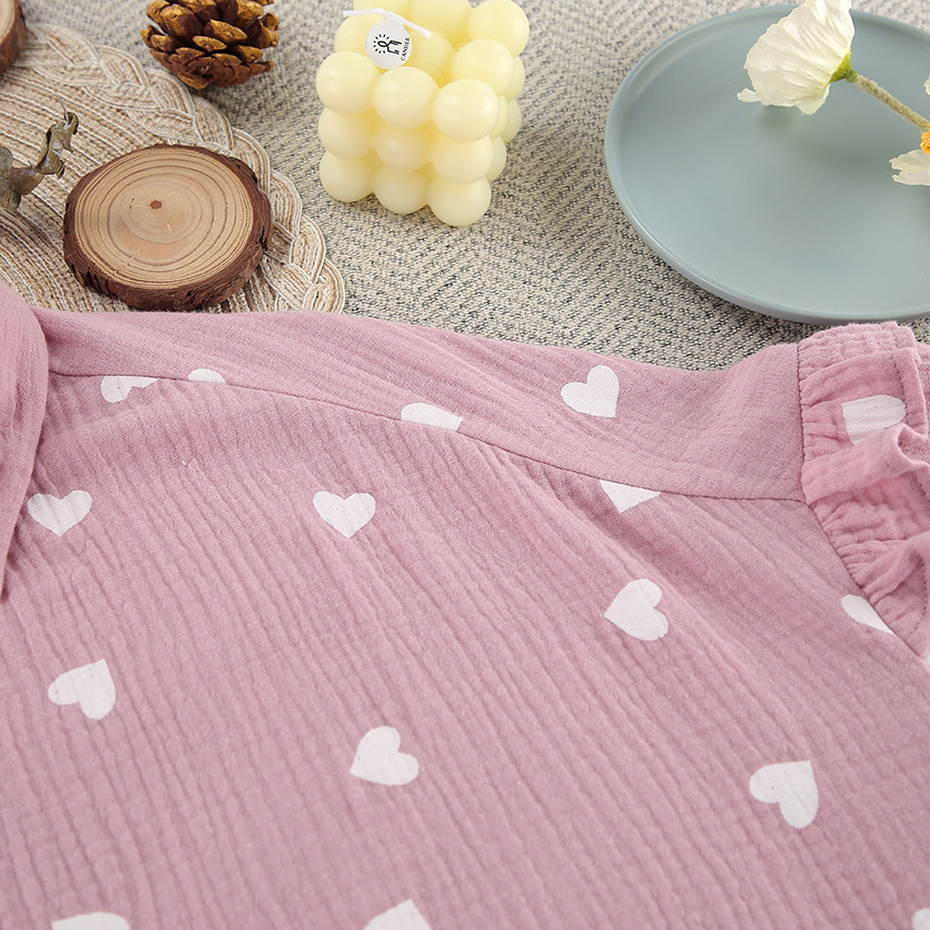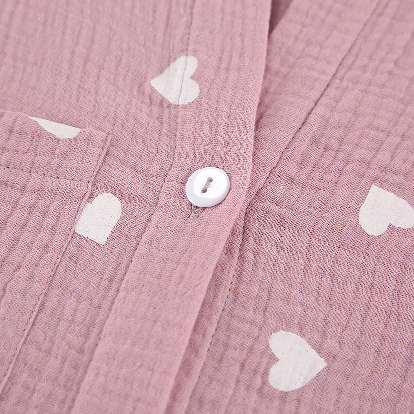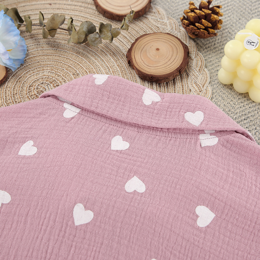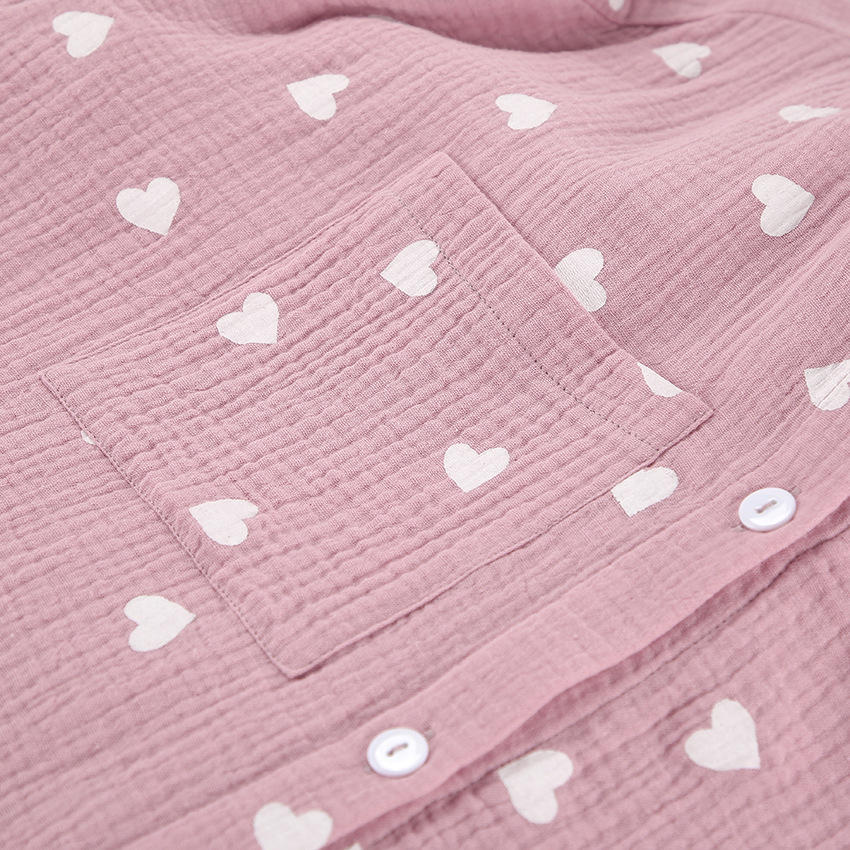 Upgrade your loungewear collection with this charming pajama set, featuring a delightful heart print and ruffled accents. The set includes a long-sleeve top and matching shorts, perfect for a cozy night's sleep or relaxing at home. Crafted from high-quality cotton, this ensemble ensures comfort and breathability for all-night wear.
