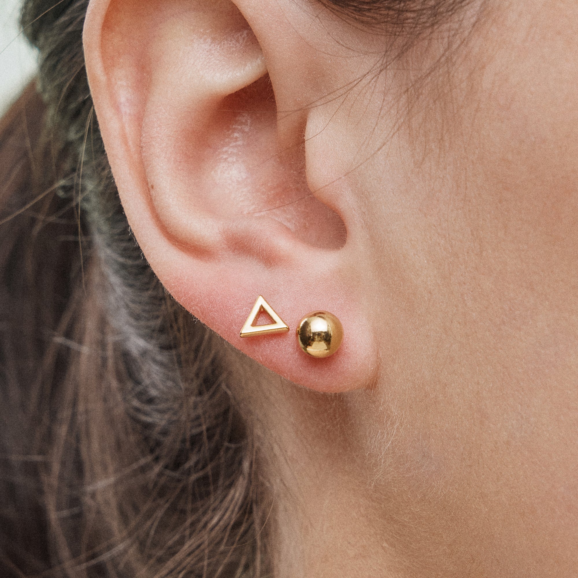 Add a touch of modern sophistication to your jewelry collection with this 6-pair geometric gold stud earring set. Featuring clean and contemporary shapes, including squares, triangles, bars, crystal hexagons, classic gold balls, and sparkling studs, this set is perfect for everyday wear or special occasions. Crafted with 18K gold dipped, these earrings offer durability and a sleek, polished finish. Lightweight and versatile, this set is ideal for mixing and matching to create unique looks or as a stylish gift for someone special.