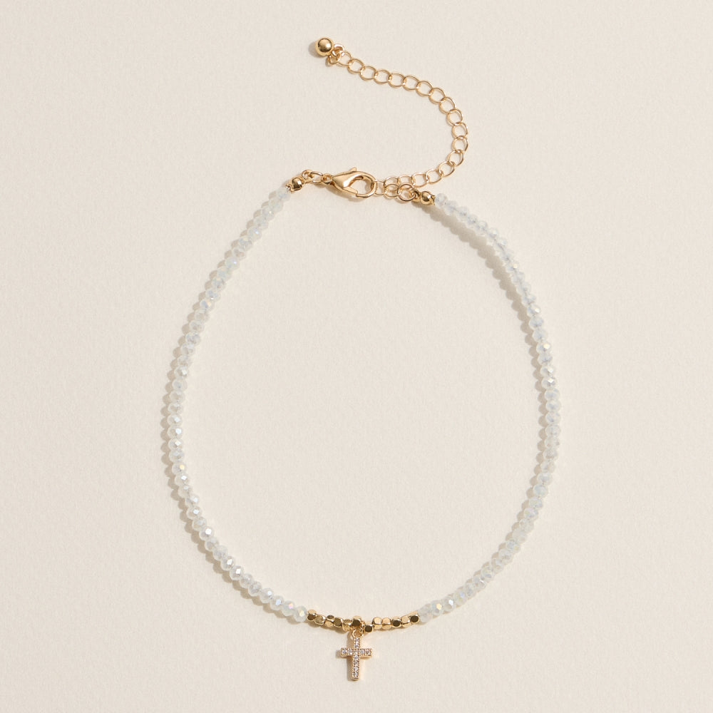 Faceted Bead Anklet with Gold Cross Charm