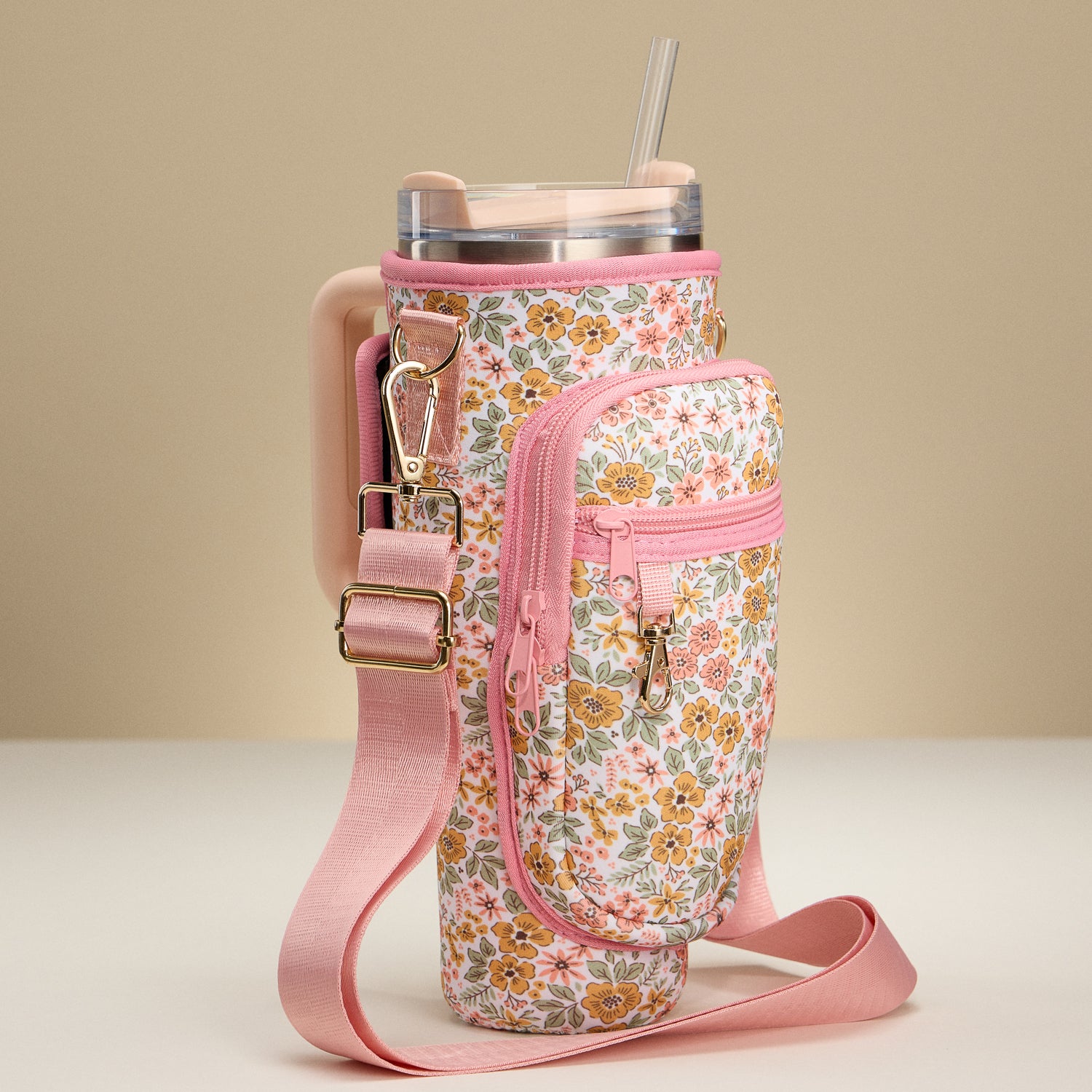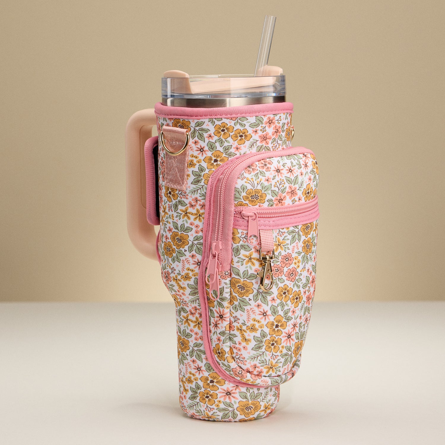 Stay hands-free and hydrated with this Floral Neoprene Tumbler Carrier. With a built-in zip pocket for keys or cards and an adjustable strap for comfort, it's perfect for errands, walks, and workouts. Made from cushioned neoprene to insulate your drink and reduce spills.
