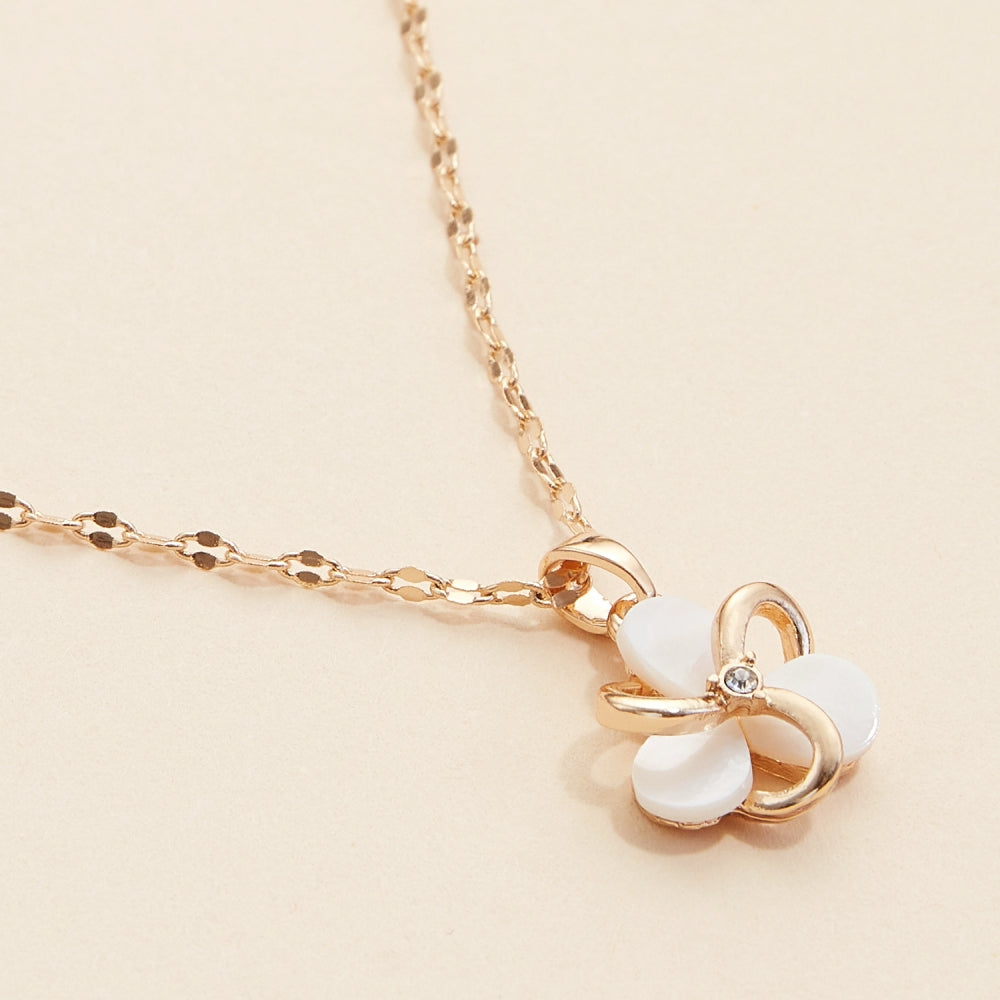 Bring a touch of lovely nature to your outfit with this short necklace adorned with a delicate floral shell charm. Perfect for adding a feminine touch to any look, this necklace is sure to become a favorite in your jewelry collection.