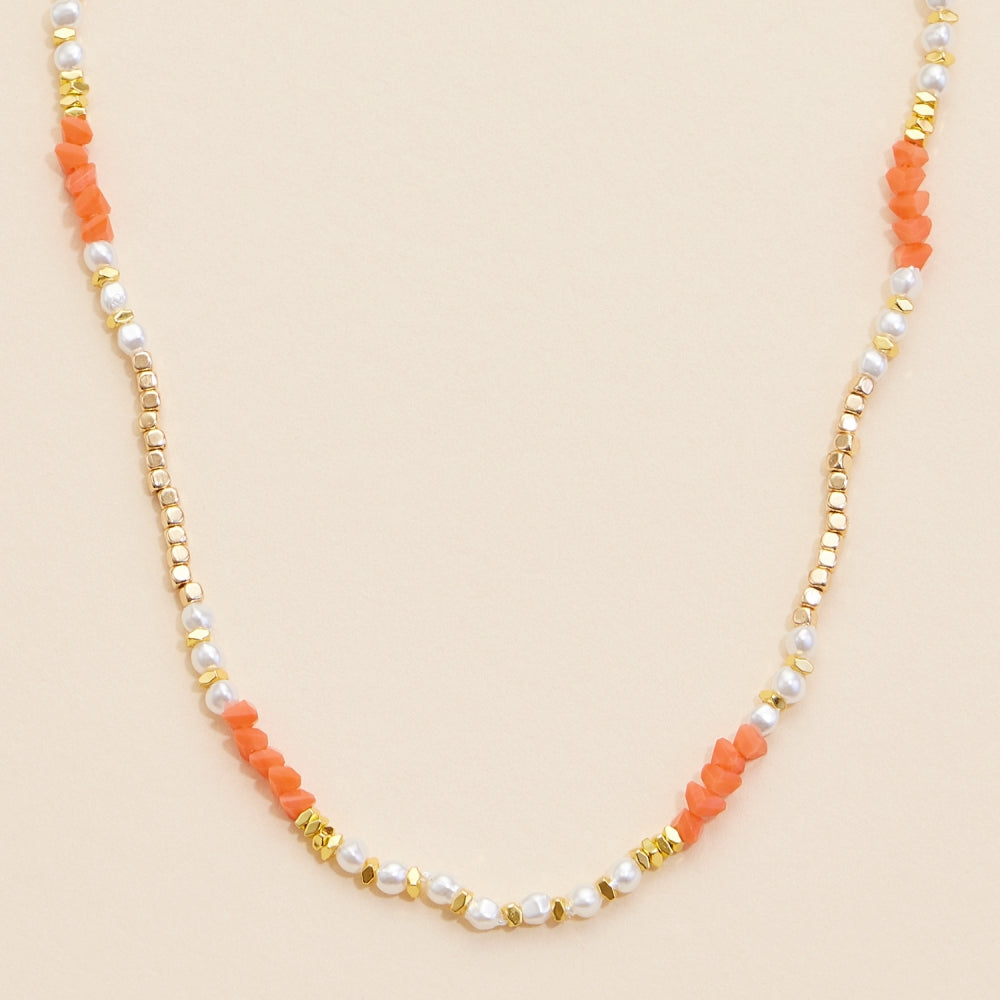 Add a touch of elegance to your wardrobe with our lovely Glass Pearl & Metal Beaded Basic Necklace. Enhance your look and feel beautiful with this timeless accessory.