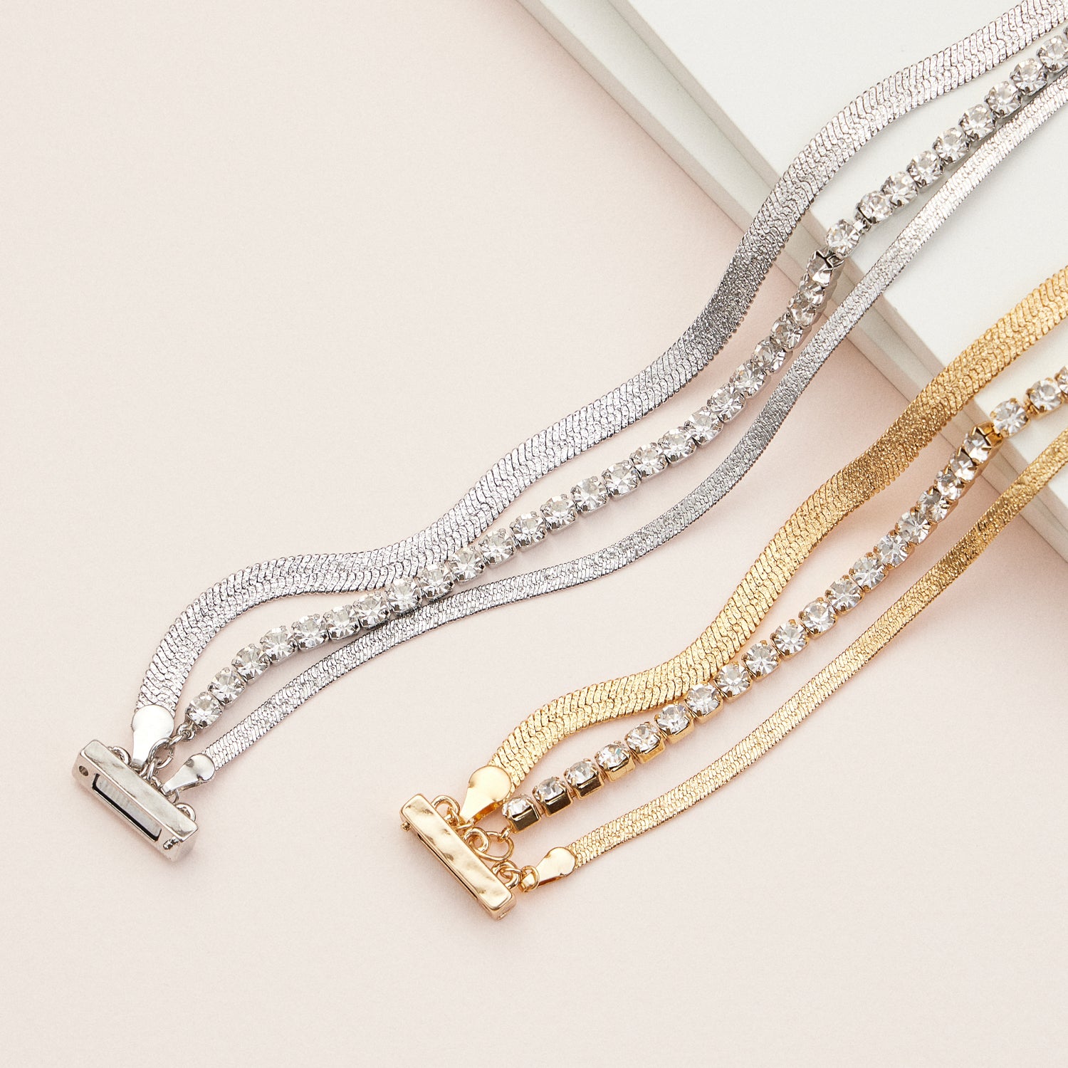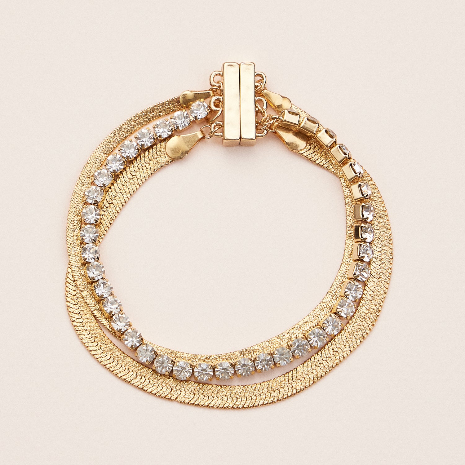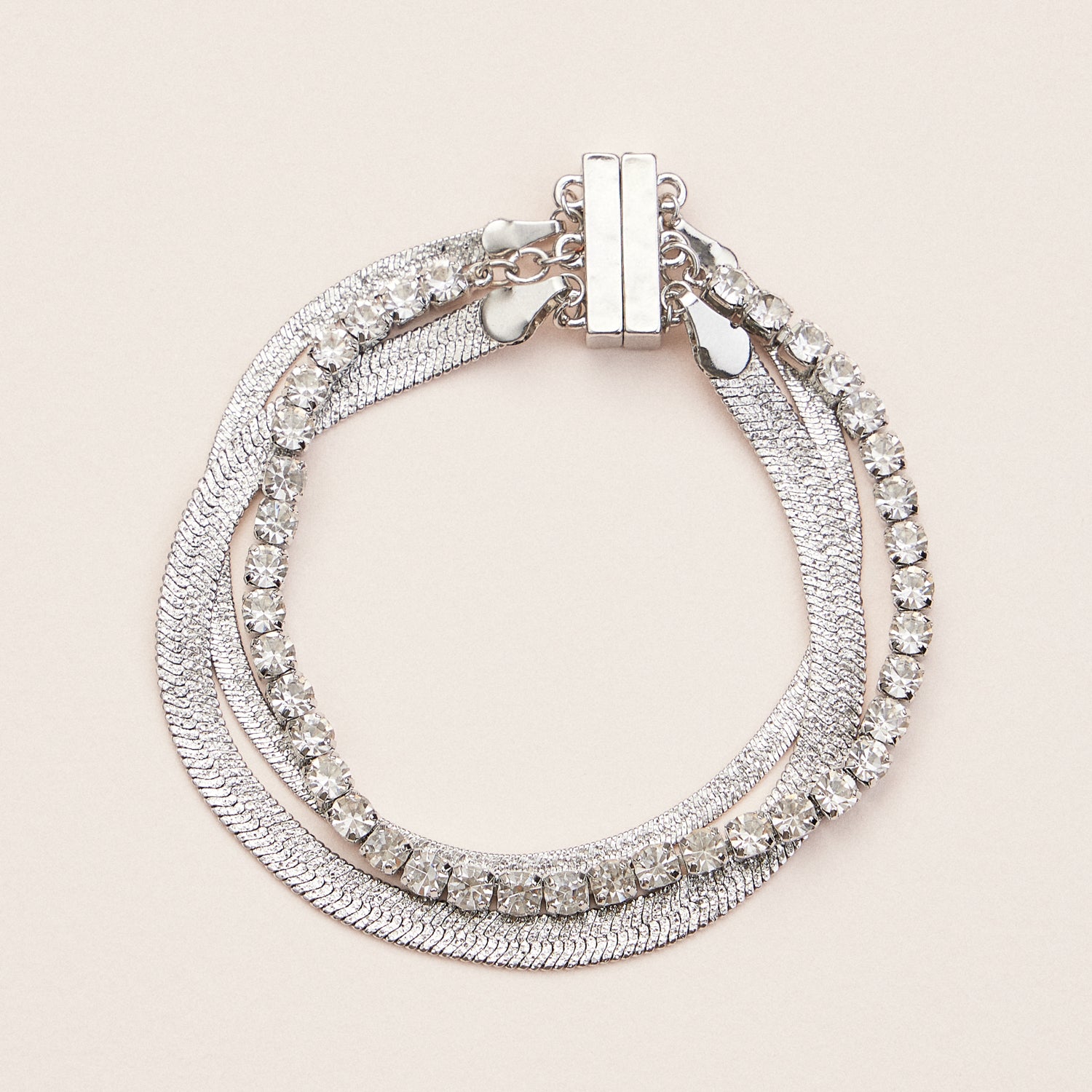 Crystal Rhinestone & Metal Magnetic Bracelet – Elegant Multi-Layered Chain Bracelet in Gold or Silver