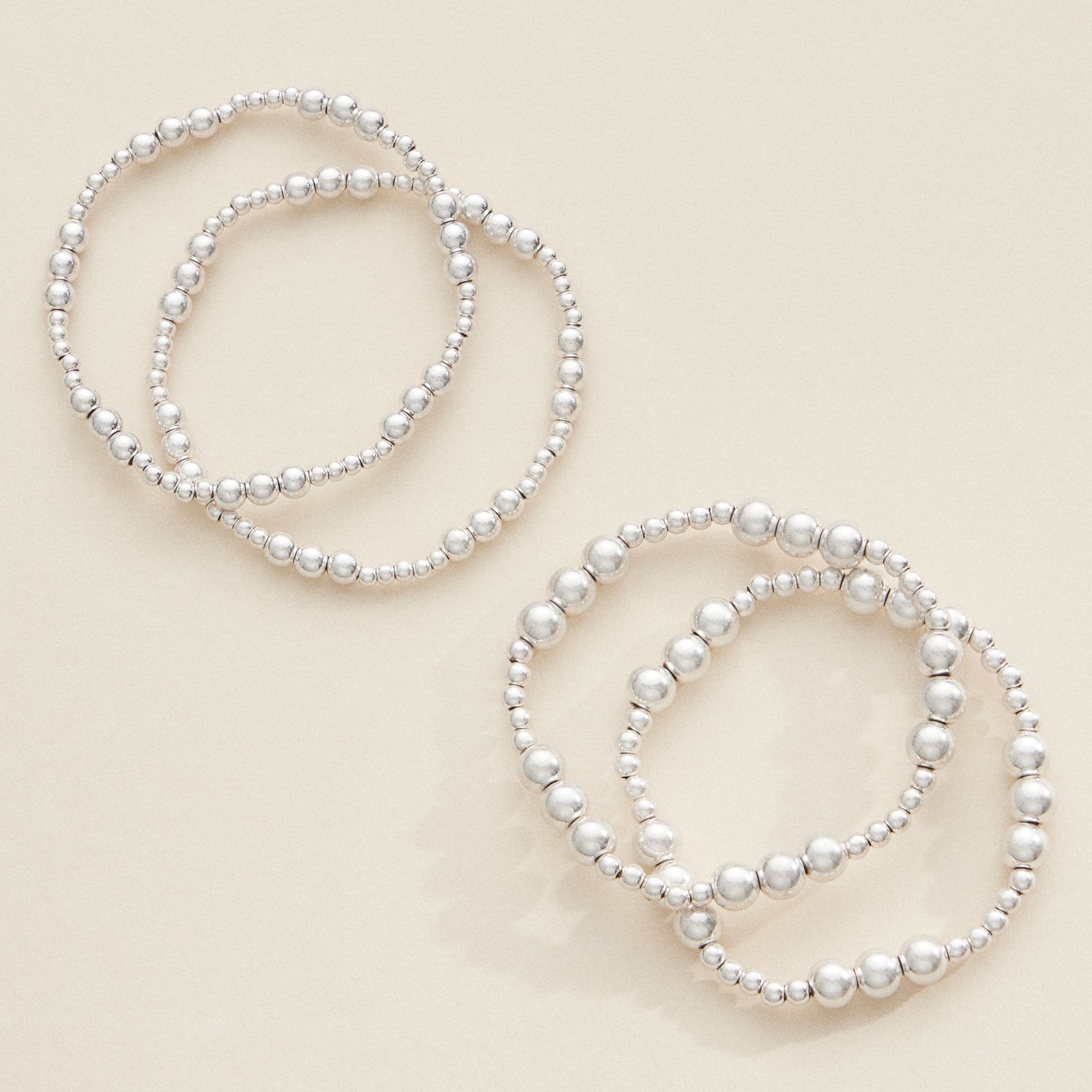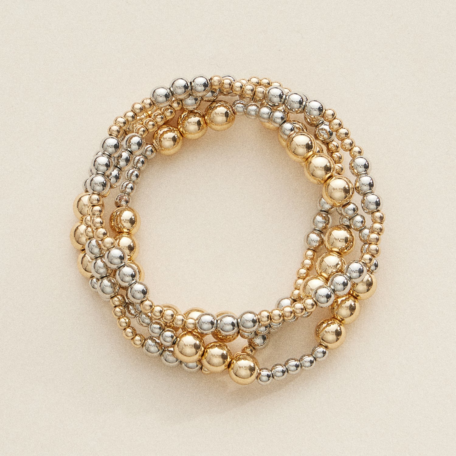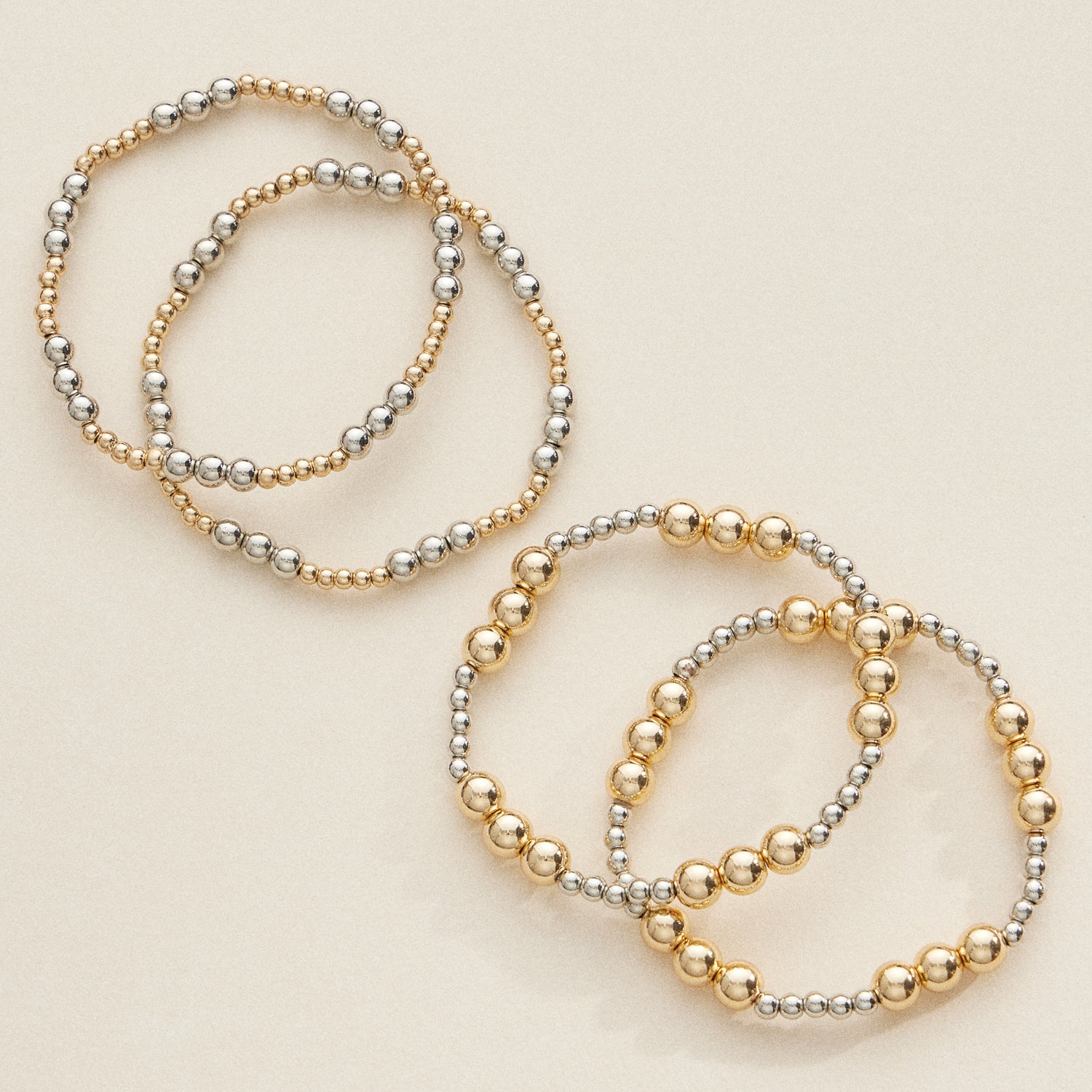 Gold and Silver Beaded Stretch Bracelet Set – Stackable Minimalist Jewelry