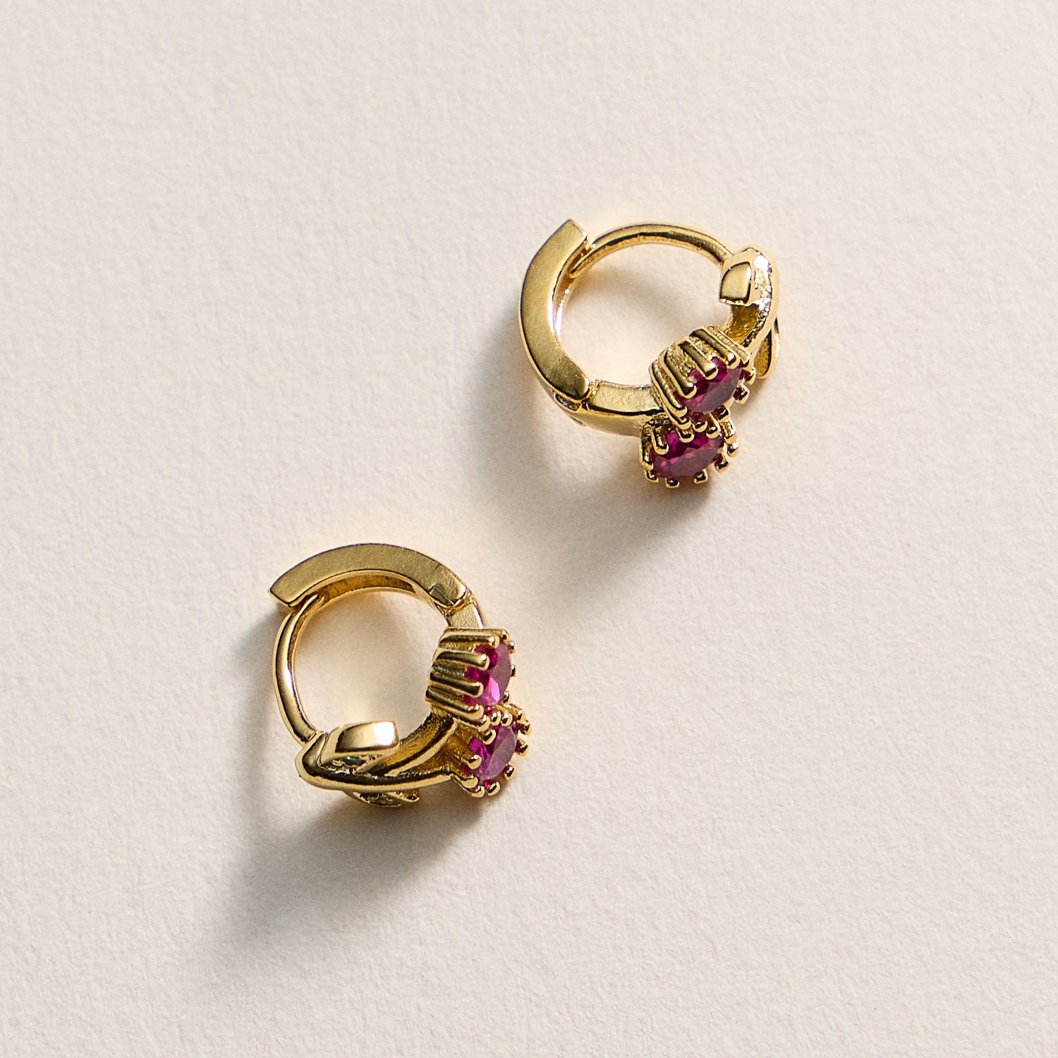 These exquisite gold-dipped stud earrings feature a charming floral design, adorned with vibrant ruby-colored stones and shimmering emerald-green accents. Crafted in Korea with meticulous attention to detail, they combine elegance and a touch of vintage charm. Perfect for adding a pop of color to your everyday style or making a subtle statement at special occasions, these lightweight earrings are as comfortable as they are beautiful. A thoughtful gift for jewelry lovers and a timeless addition to any collection.