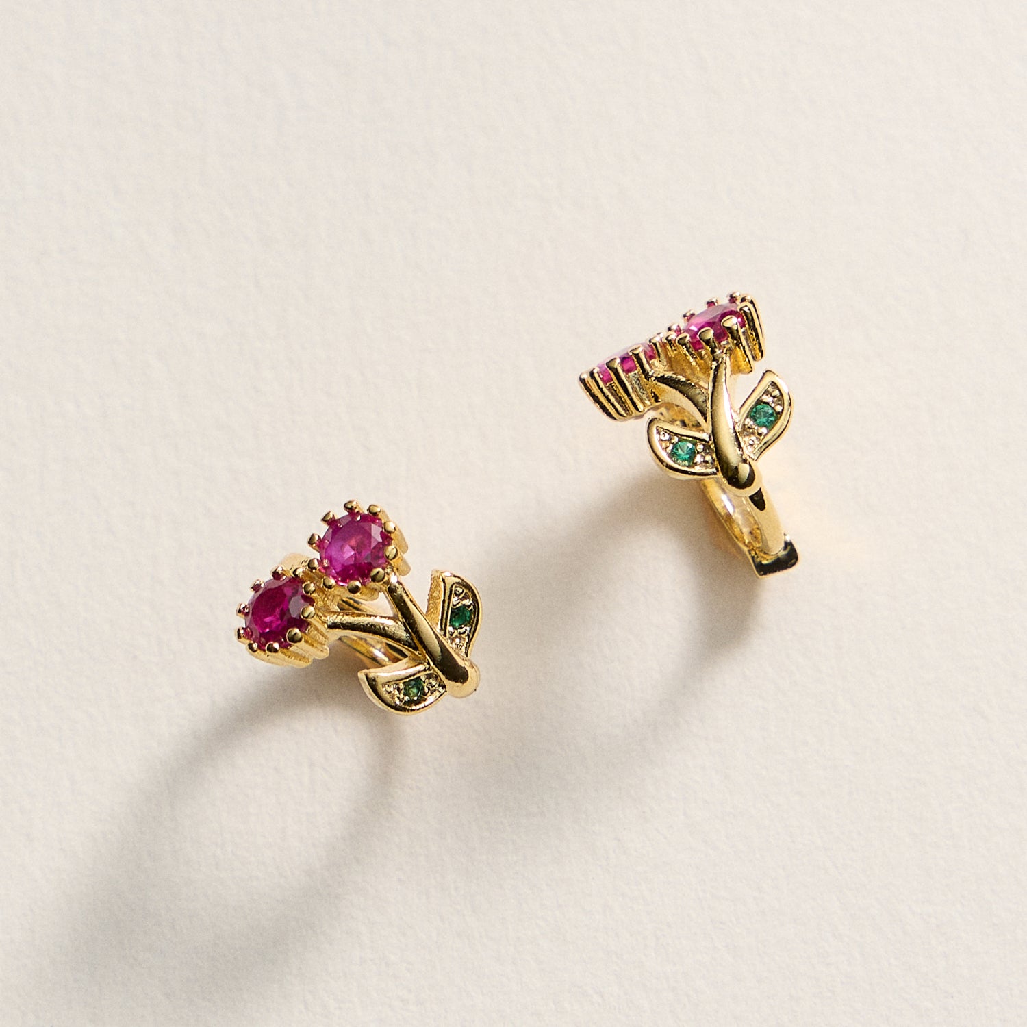 Gold-Dipped Ruby & Emerald Flower Stud Earrings – Made in Korea