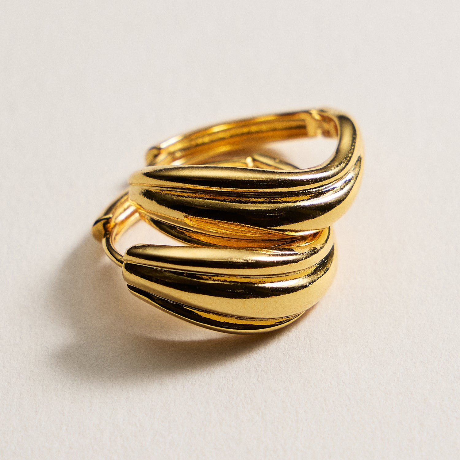 Gold-Dipped Textured Hoop Earrings – Modern Layered Design, Made in Korea