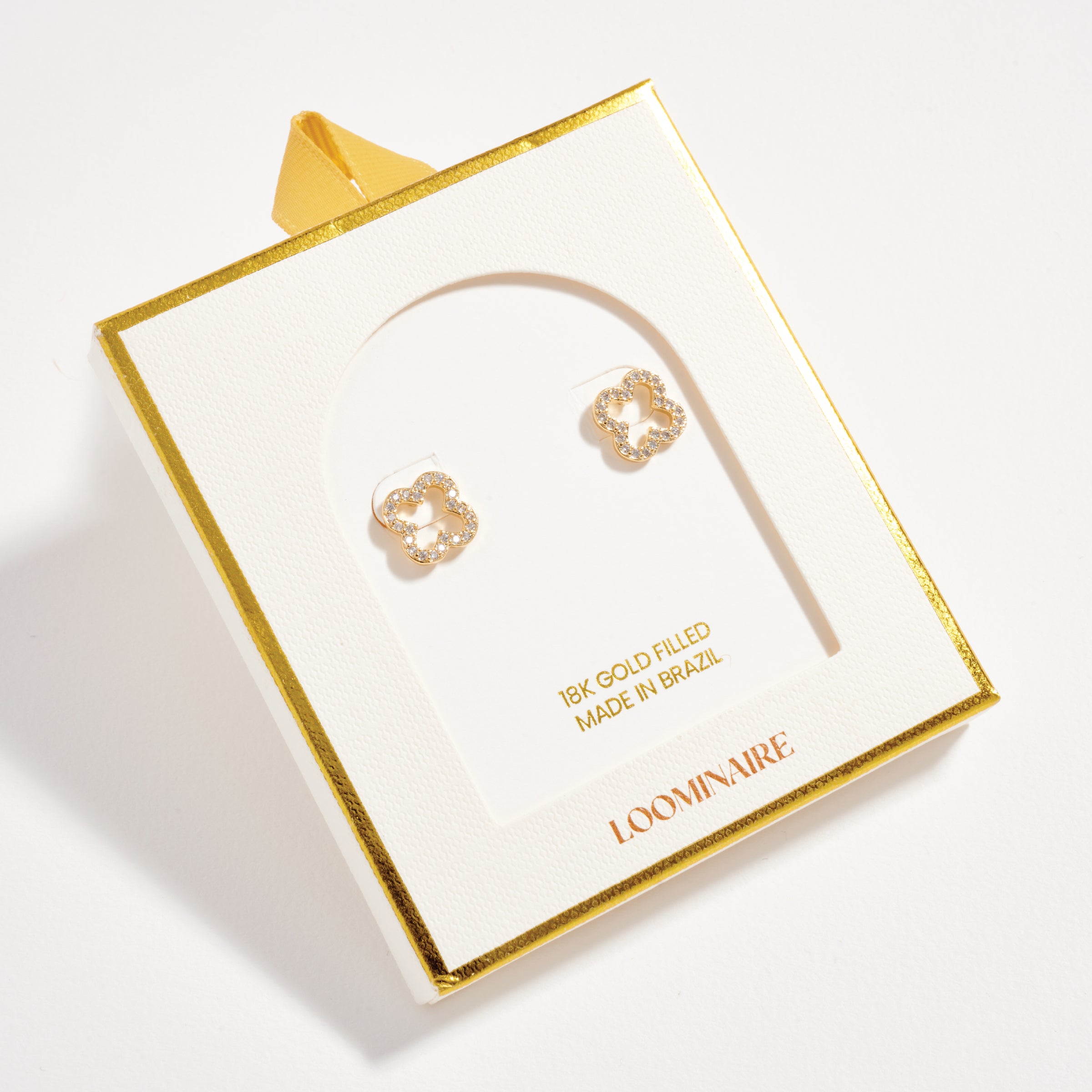 Bring luck and sparkle to your style with these gold filled clover stud earrings, outlined with shimmering cubic zirconia stones. Their delicate openwork clover design makes them both meaningful and chic, perfect for everyday wear or as a thoughtful gift. Lightweight and versatile, these studs add just the right touch of shine to casual and dressy looks alike.