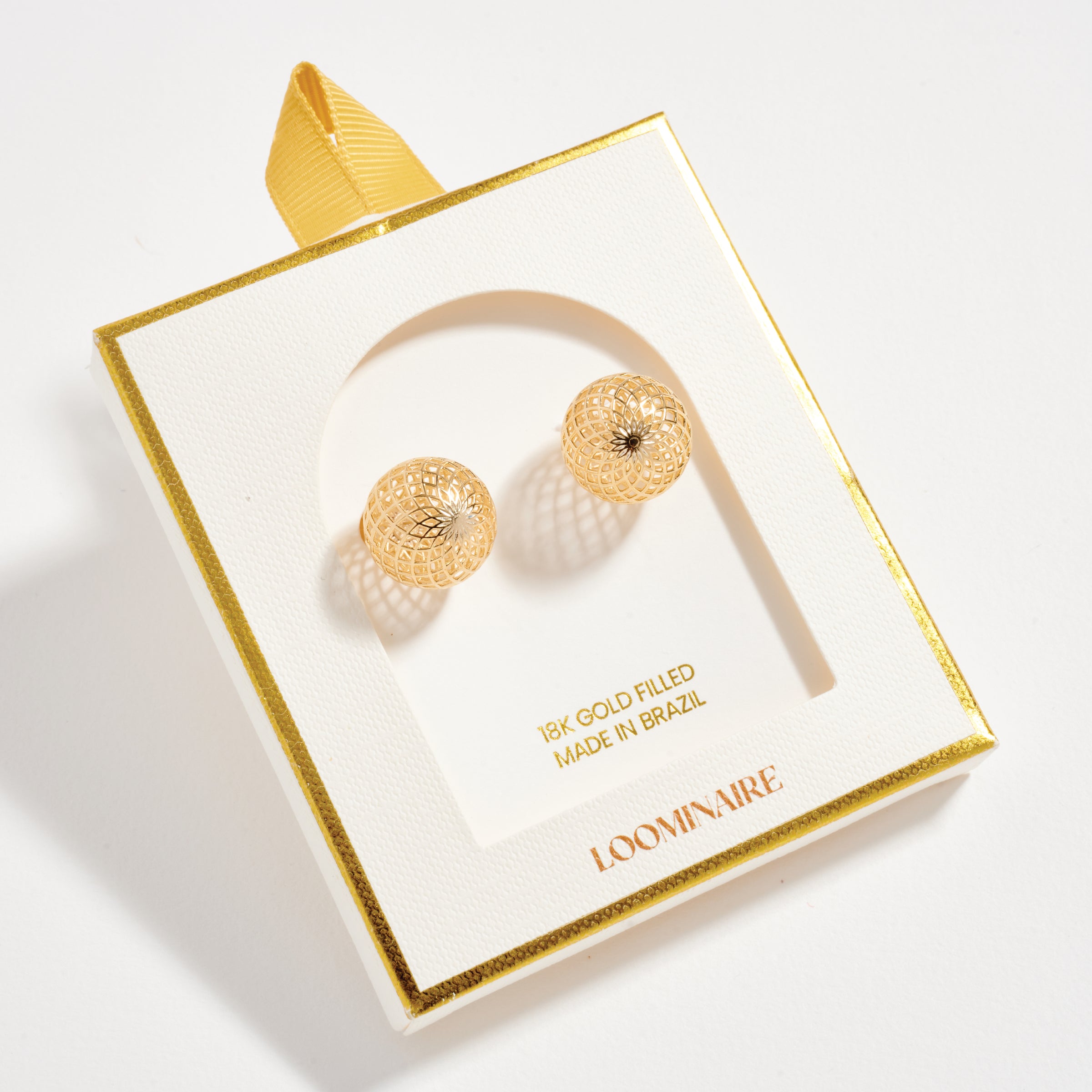 These gold filled lattice ball stud earrings bring modern elegance with their openwork sphere design. Crafted with 18K gold filled metal, they’re tarnish-resistant, hypoallergenic, and durable enough for everyday wear. Lightweight yet eye-catching, these studs add a chic touch to both casual and dressy looks. A timeless style perfect for jewelry lovers and boutique collections.