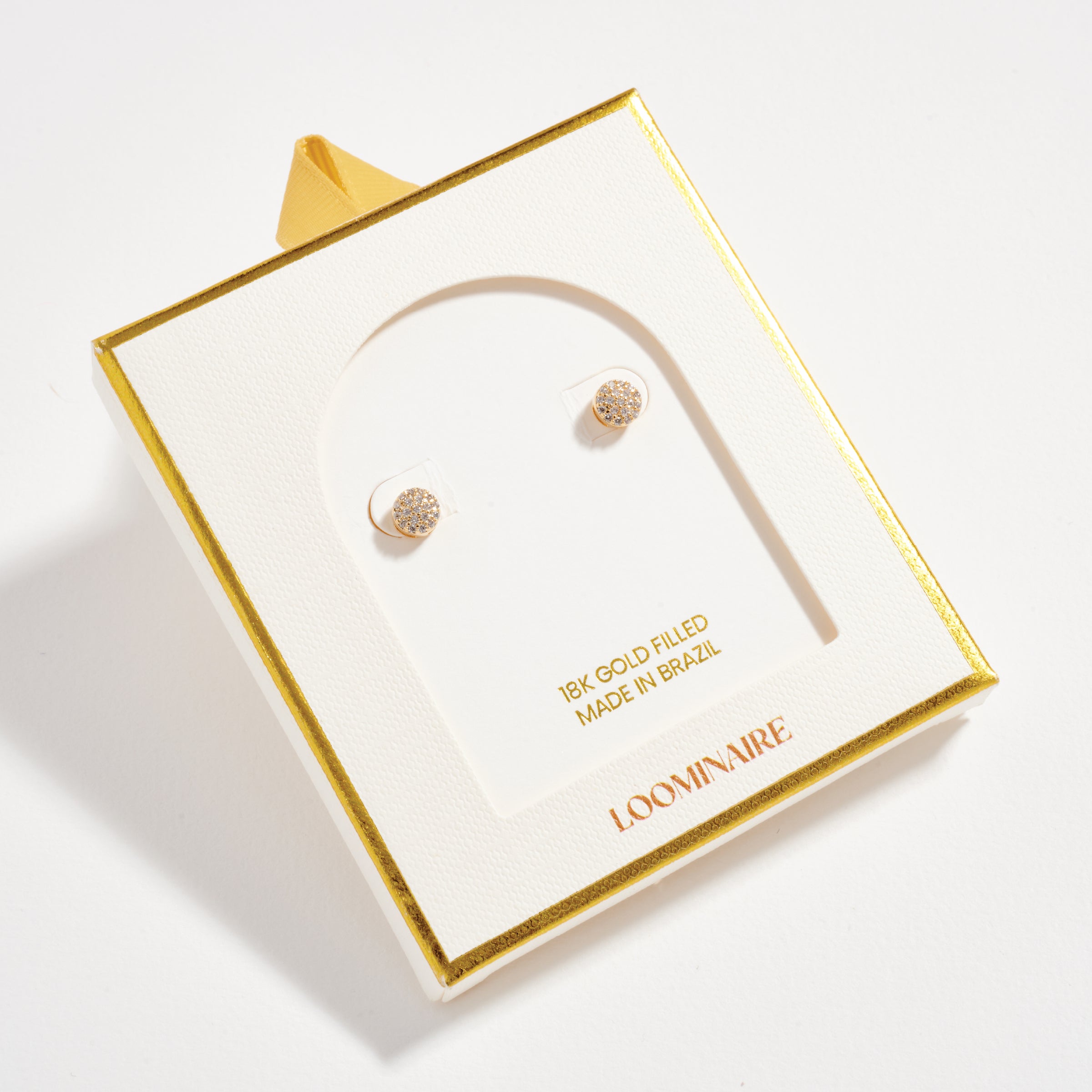 Gold Filled Round CZ Stud Earrings – Pave Crystal Design