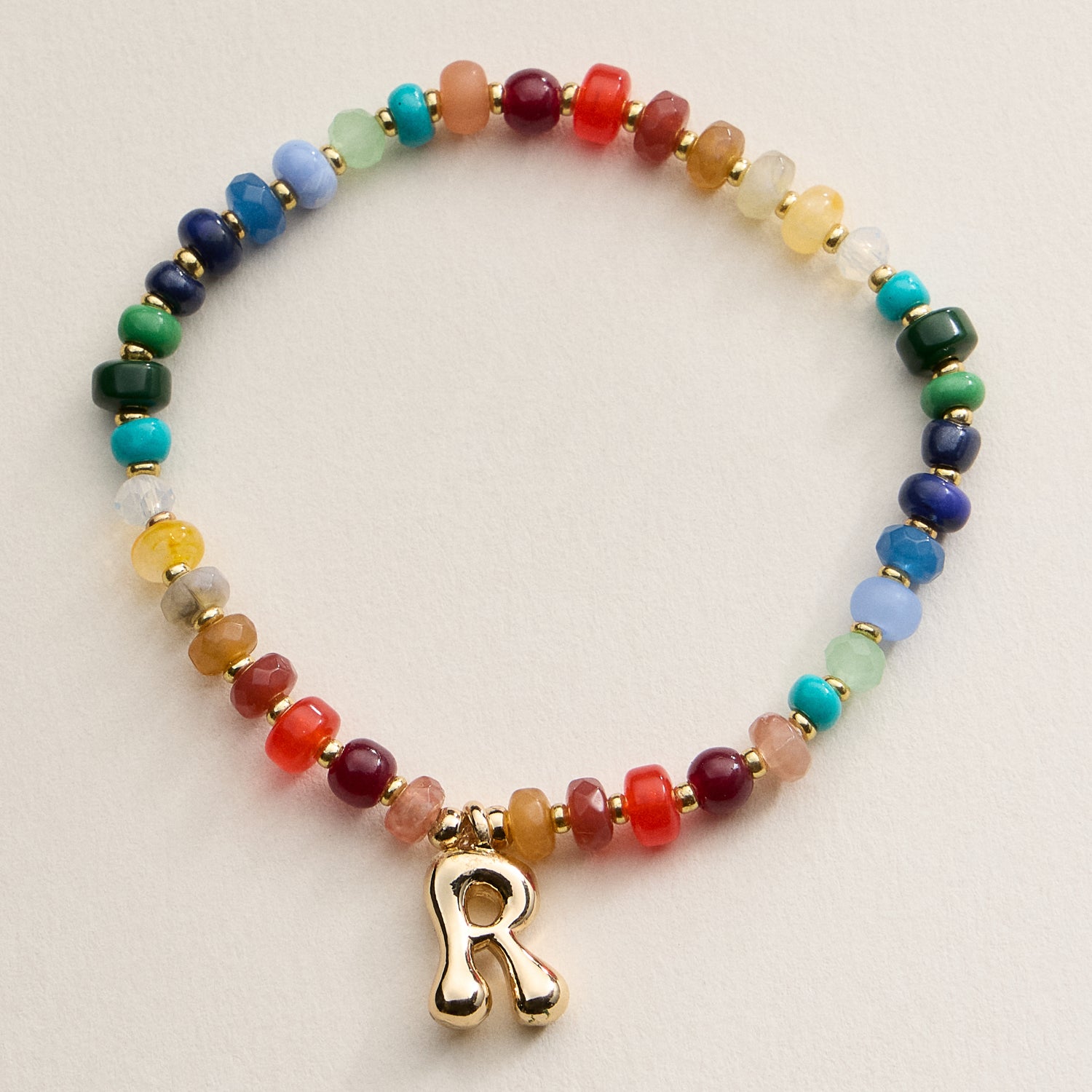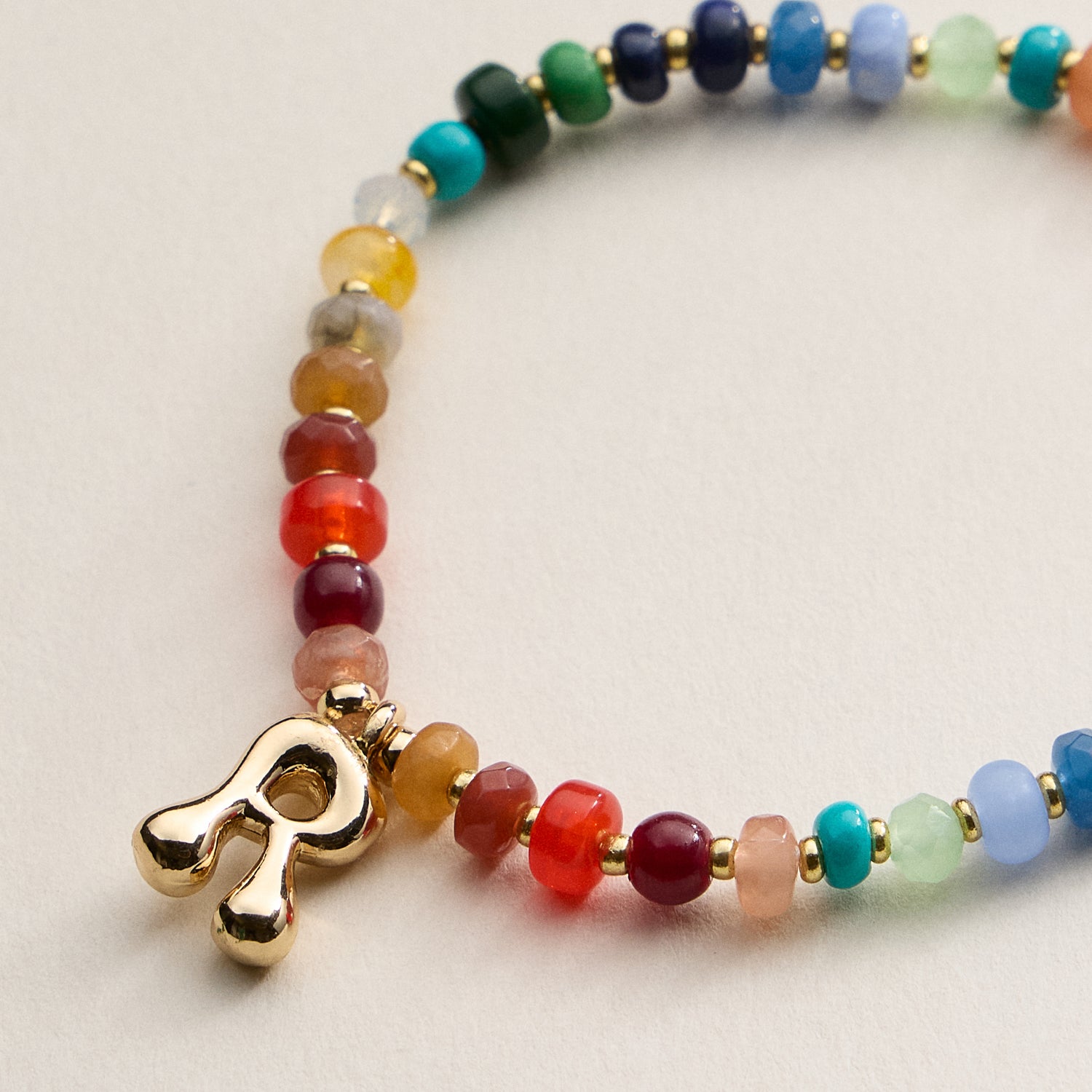 Charm: Gold-plated initial (A, B, C, D, E, G, H, J, K, L, M, N, P, S, R, T)