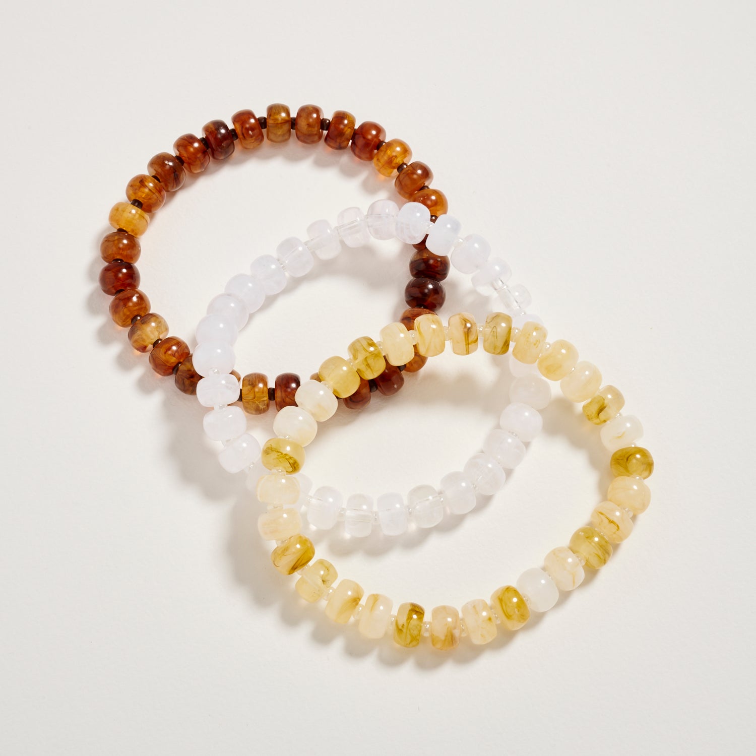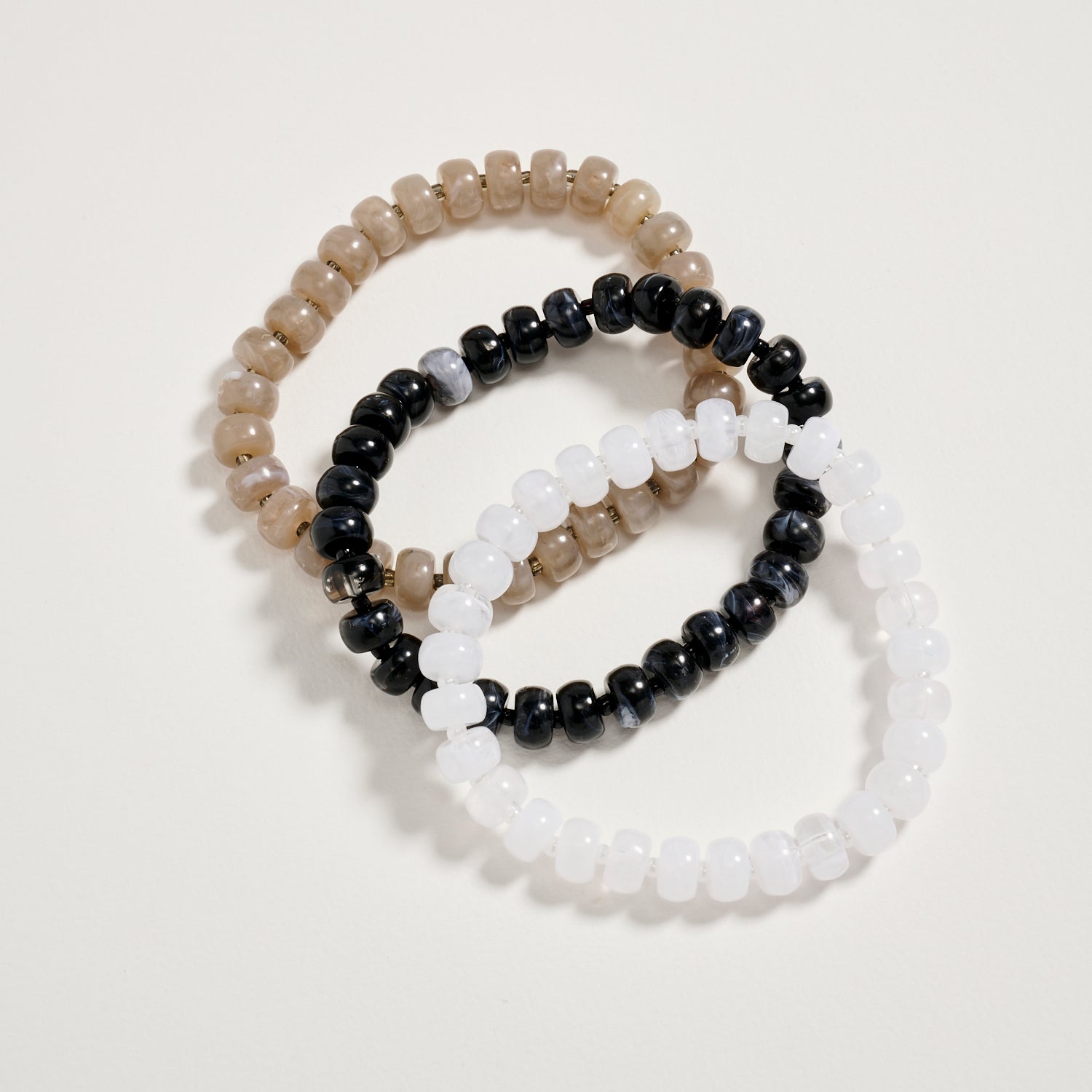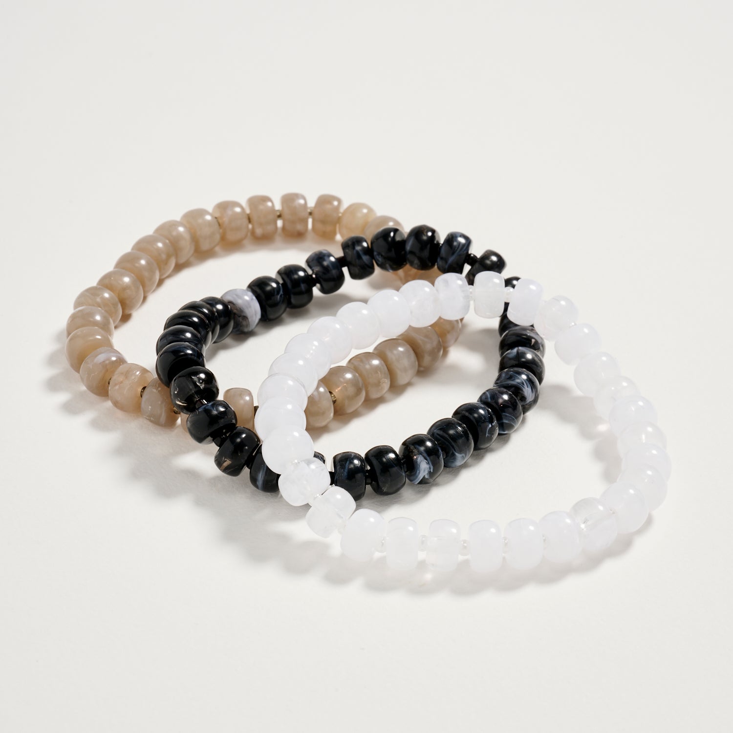 Add effortless color and texture to your accessory collection with this Triple Stack Stretch Bead Bracelet Set. Designed with smooth, tumbled-stone-inspired disc beads, each set includes three coordinating stretch bracelets that create a beautifully layered look. Strung on durable elastic, these bracelets easily slip on and off, offering a flexible fit that suits most wrist sizes.